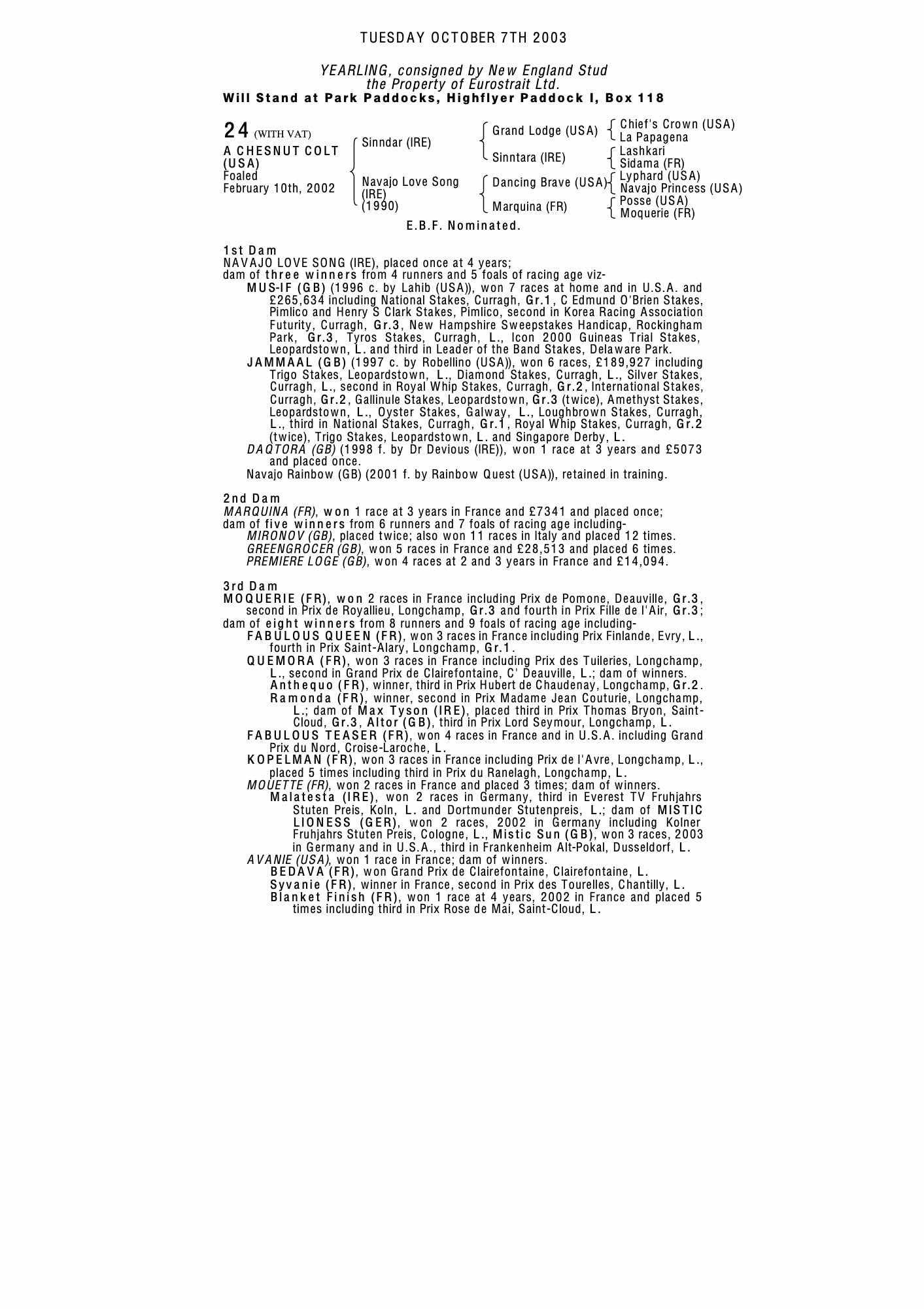 October Yearling Sale 1998 lot 535 C. by Robellino (USA) , Ted Voute, Agent=>Shadwell Estate Company 240,000 gns