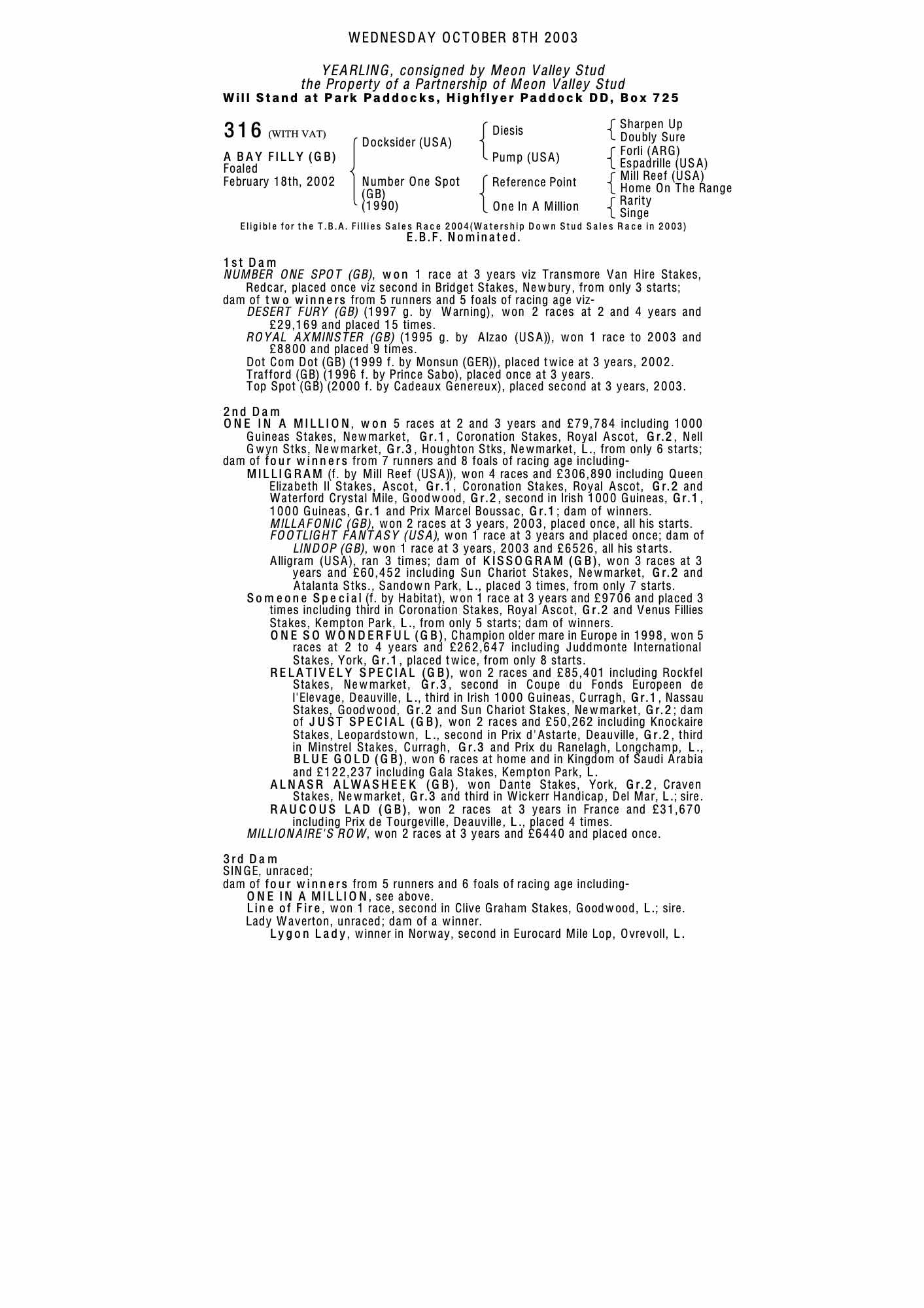 December Mare Sale 2004 lot 2081 Top Spot (GB) (M. by Cadeaux Genereux), Meon Valley Stud=>Curragh Bloodstock Agency 8,500 gns
