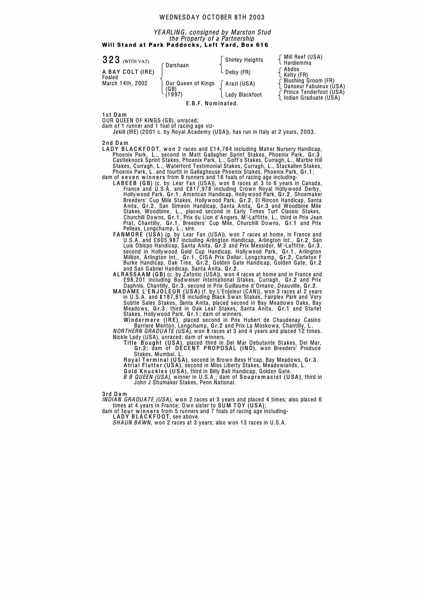 October Yearling Sale, Book 1 2004 lot 548 F. by Spinning World (USA) 2003, Marston Stud=>Vendor 42,000 gns
