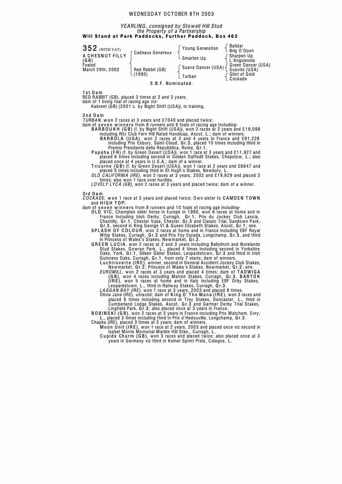 Autumn Horses in Training Sale 2009 lot 503 Brer Rabbit (GB) (F. by Invincible Spirit (IRE)), Faringdon Place Stables (B. Hills)=>Michael Allen 2,000 gns