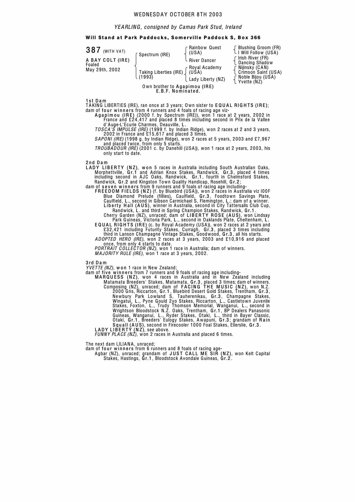 Autumn Horses in Training Sale 2001 lot 571 Saponi (IRE) (G. by Indian Ridge), Manton House Stables=>Guy Stephenson 8,000 gns