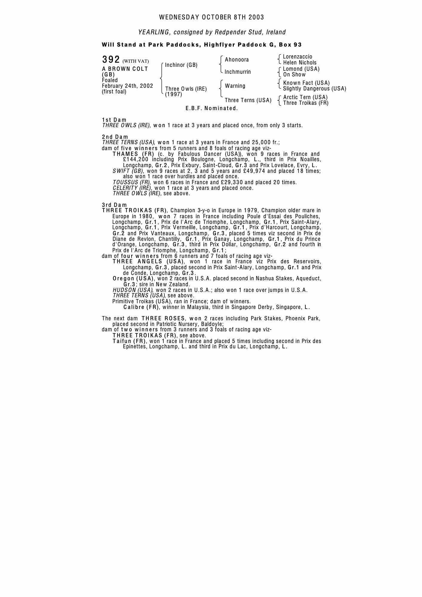December Foal Sale 2002 lot 1096, Rushbrooke Stud=>A Skiffington 40,000 gns