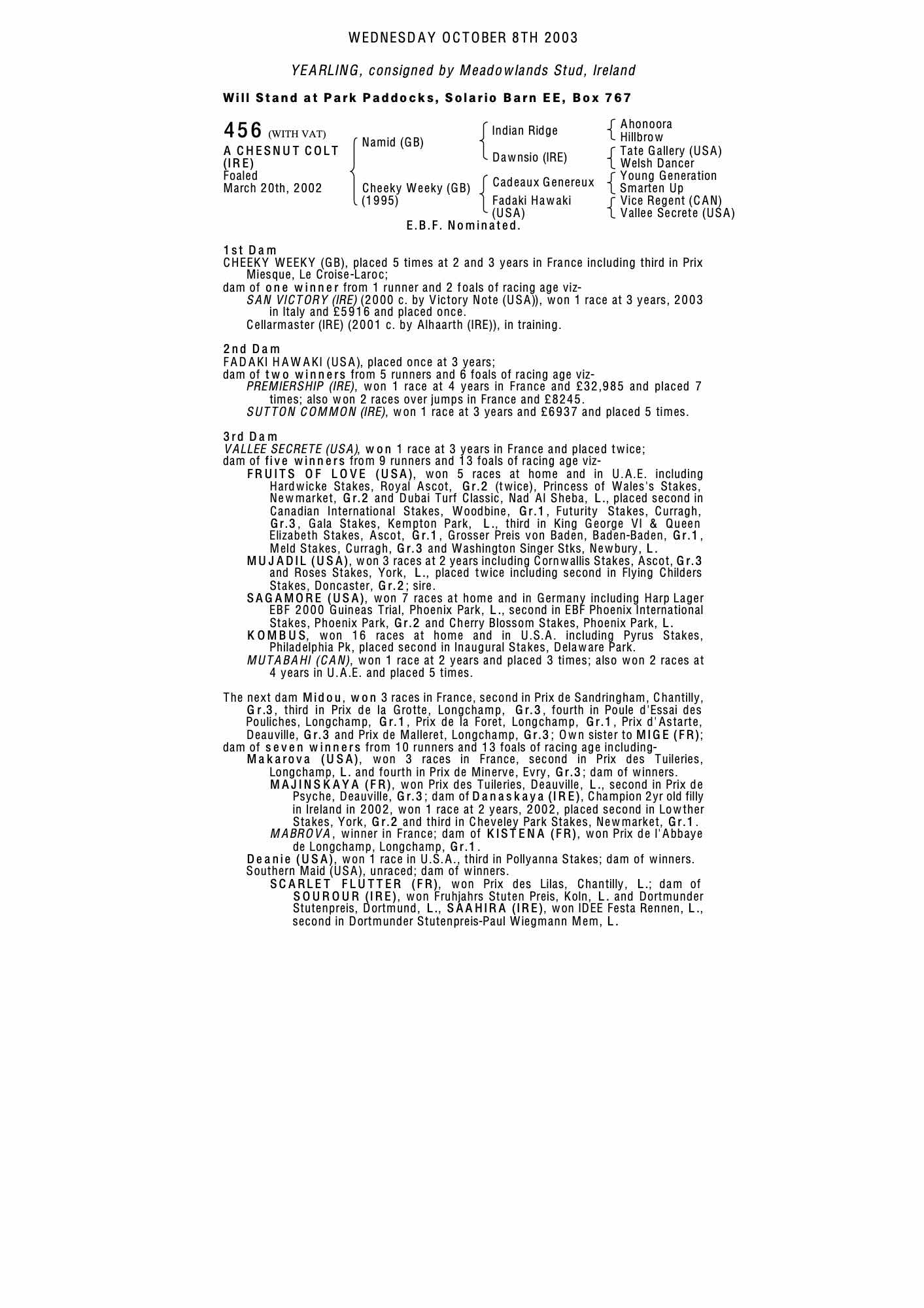 December Foal Sale 2002 lot 1040, Skara Stud, Ireland=>Browne Bloodstock Enterprise 41,000 gns