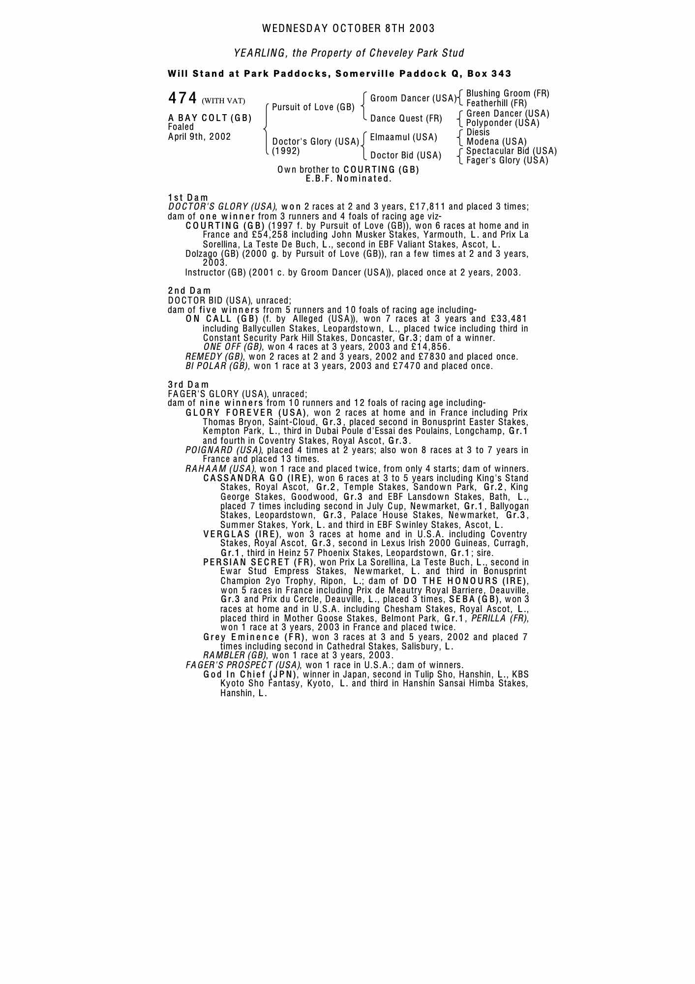 October Yearling Sale 2002 lot 517 C. by Groom Dancer (USA) 2001, Cheveley Park Stud=>John Warren Bloodstock 110,000 gns