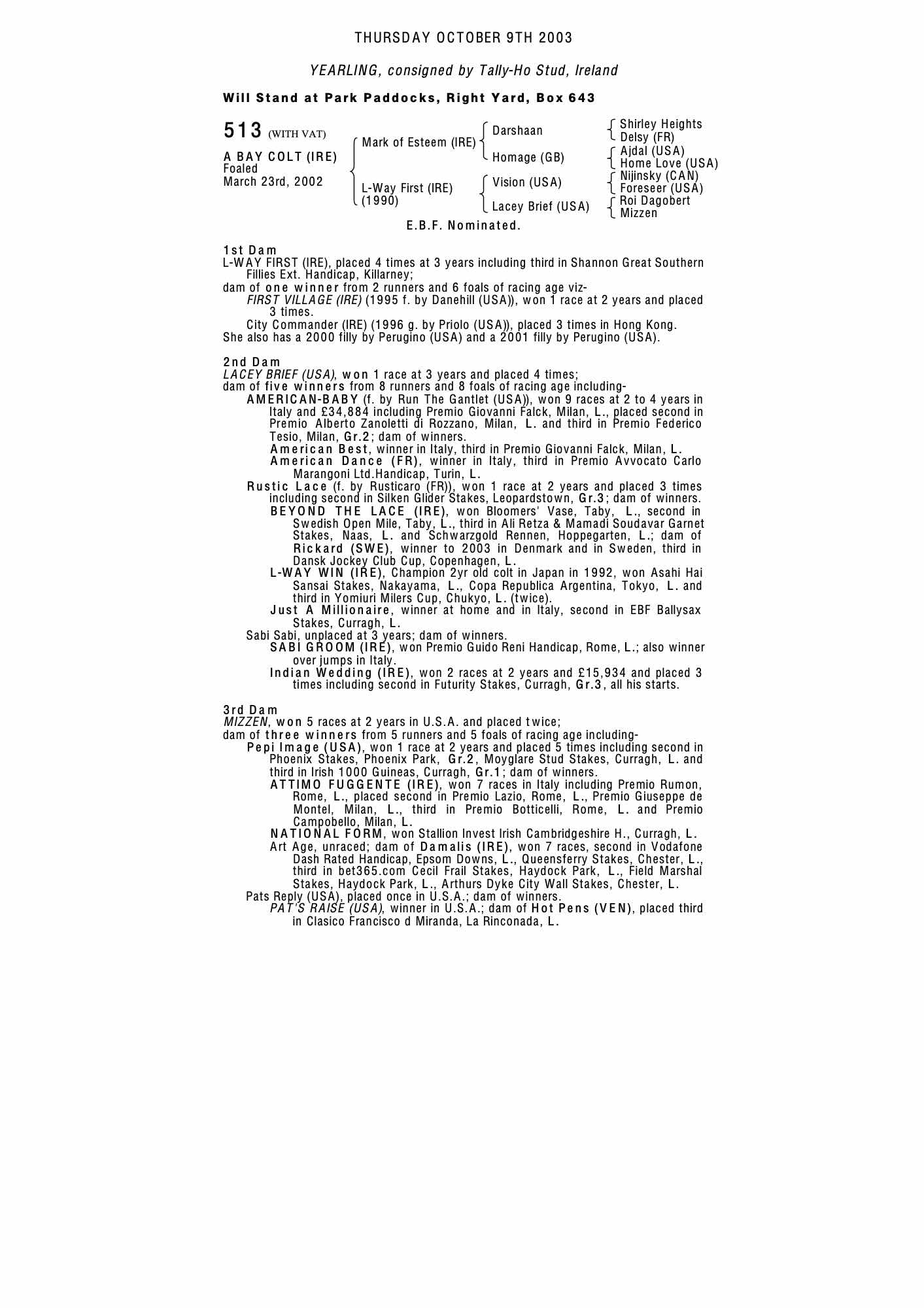 Breeders Flat Sale 2002 lot 123 F. by Perugino (USA) 2001, Ringfort Stud=>Eugene Wallace €1,000