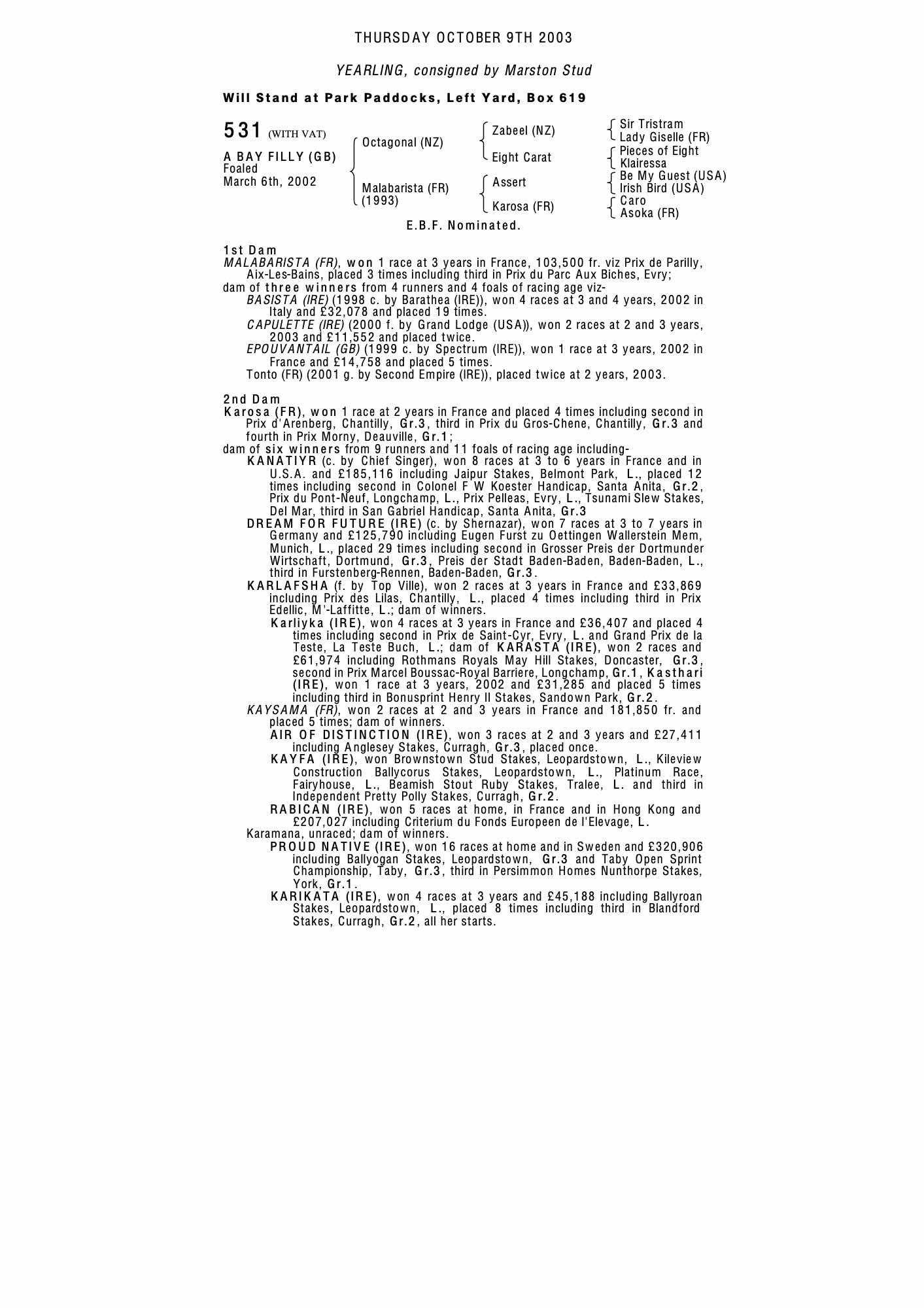 October Yearling Sale 2001 lot 420 F. by Grand Lodge (USA) , The Marston Stud=>C Gordon-Watson Bloodstock 26,000 gns