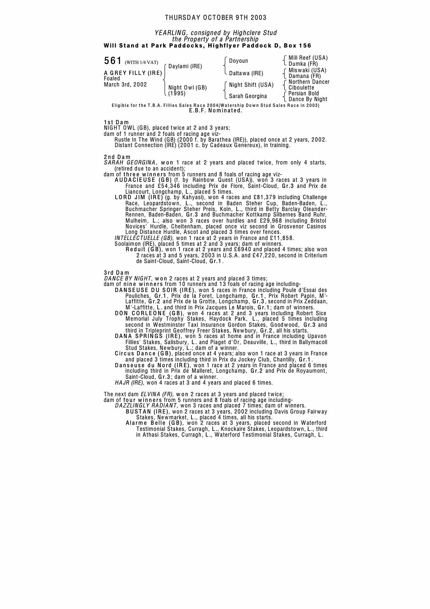 October Yearling Sale, Book 2 2004 lot 1034 F. by Spectrum (IRE) 2003, Highclere Stud=>Vendor 8,000 gns