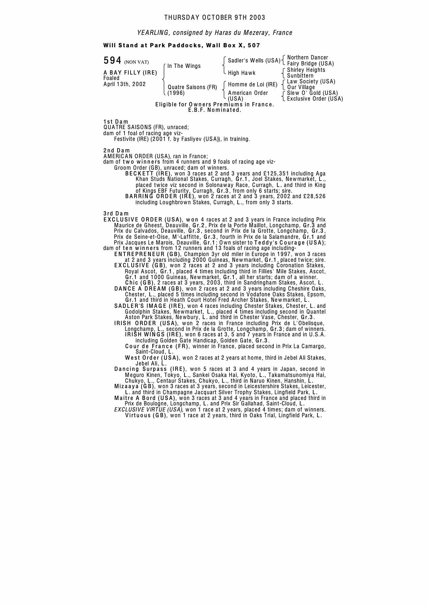Craven Breeze Up Sale 2009 lot 80 F. by Galileo (IRE) 2007, Kirkwood Stables, USA=>Lot Not Sold 44,000 gns
