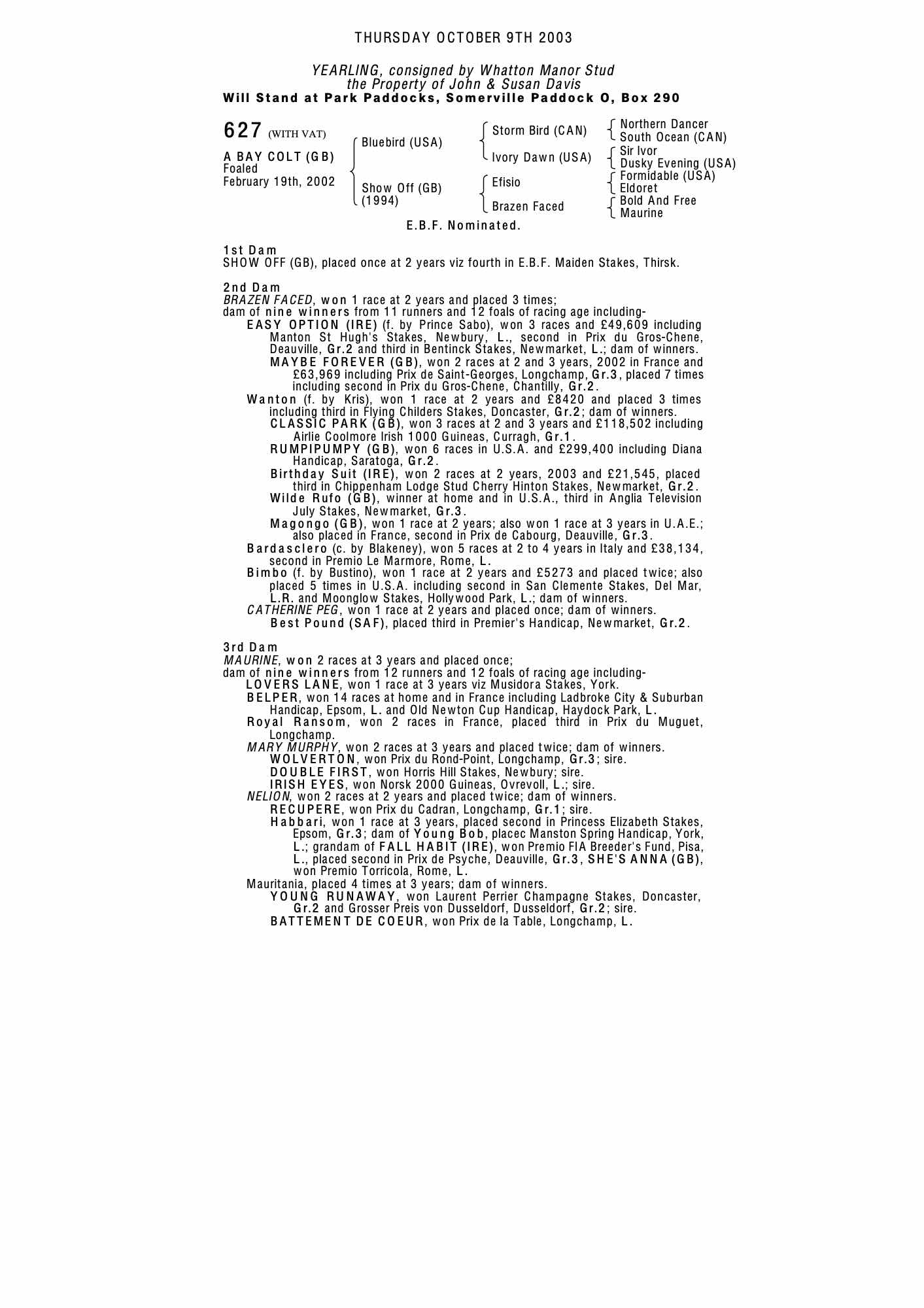 October Yearling Sale, Book 2 2004 lot 1101 C. by Mark of Esteem (IRE) 2003, Whatton Manor Stud=>W Jarvis 20,000 gns