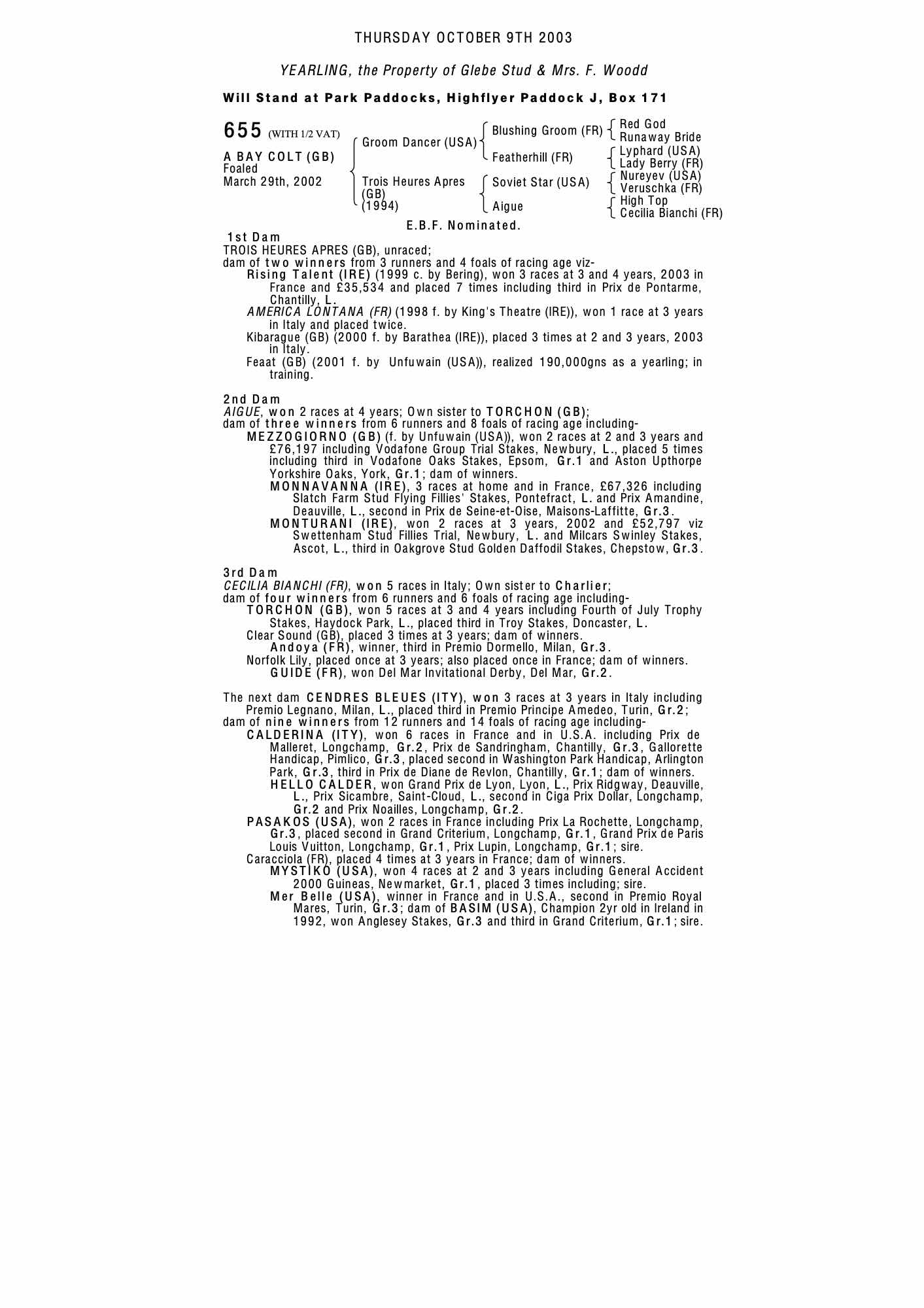 October Yearling Sale 2001 lot 555 F. by Barathea (IRE) , Glebe Stud=>A Skiffington 36,000 gns