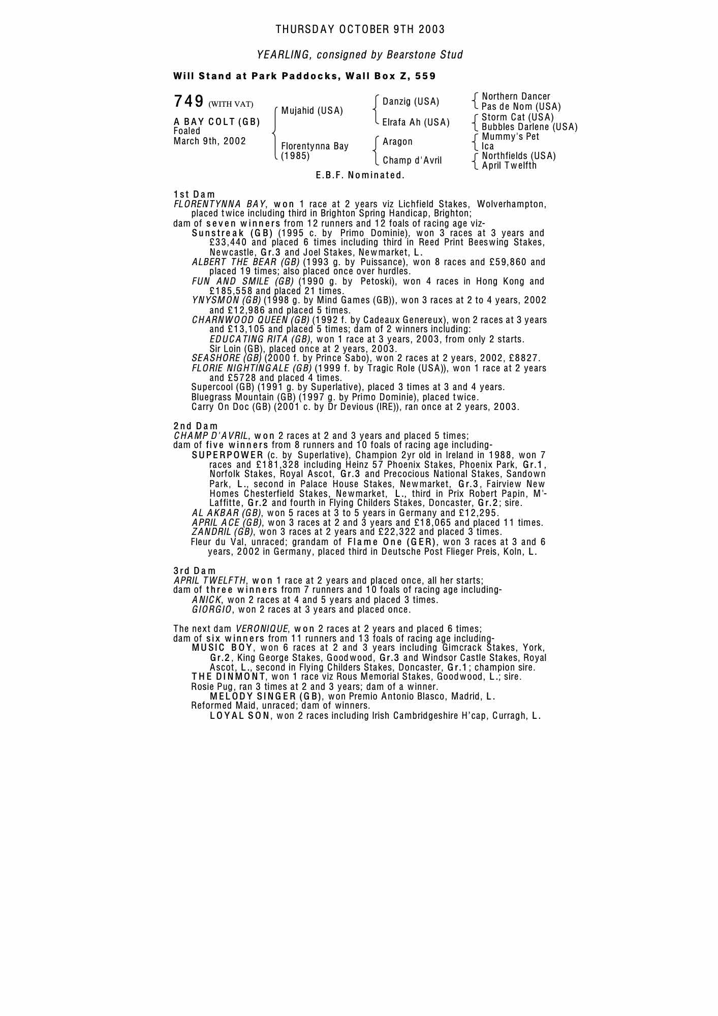 February Sale 2001 lot 149 Sunstreak (GB) (C. by Primo Dominie), Barton Stud=>Yvonne Durant 3,000 gns