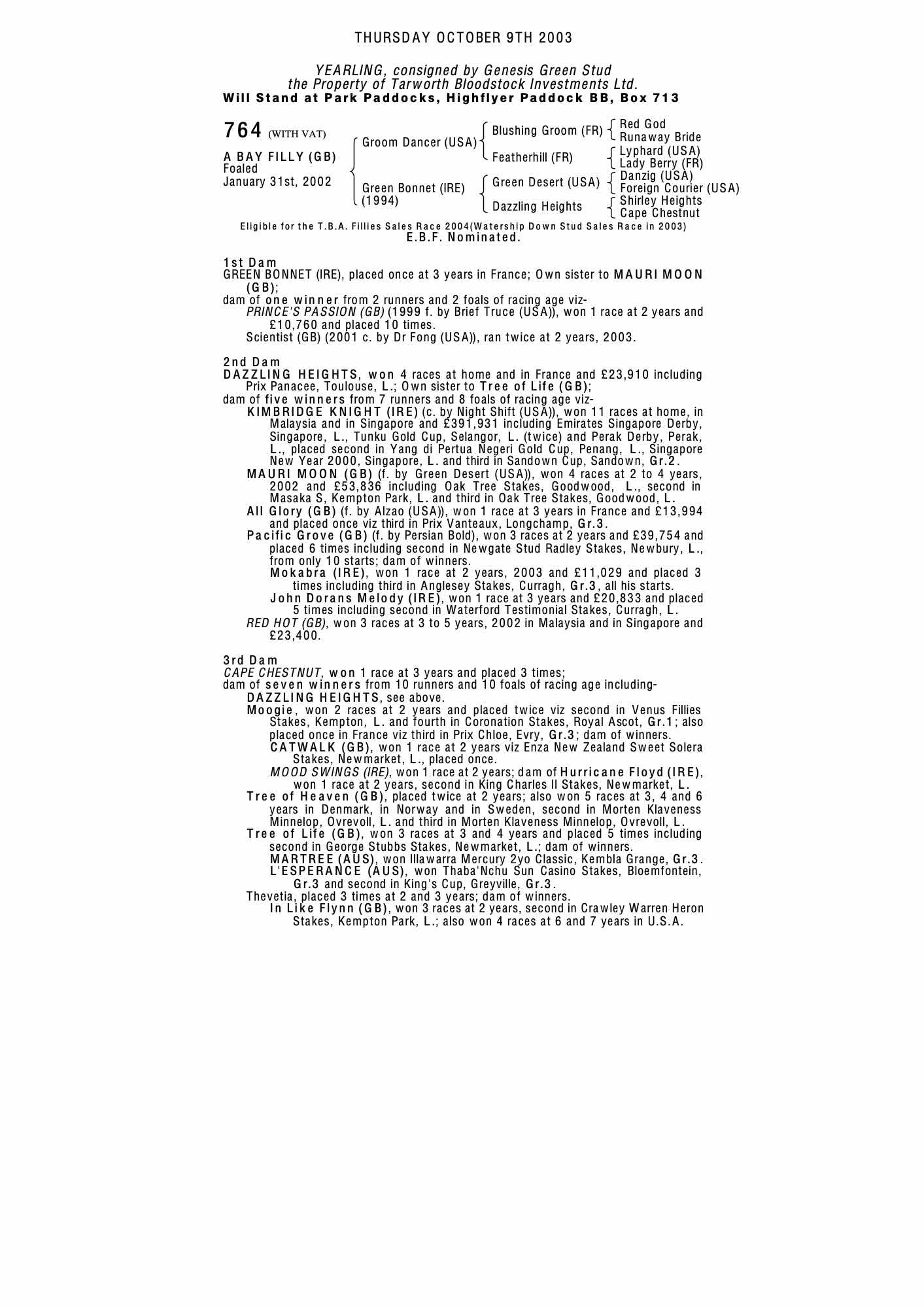 October Yearling Sale, Book 1 2004 lot 479 F. by Pivotal (GB) 2003, Genesis Green Stud=>Shadwell Estate Company 130,000 gns