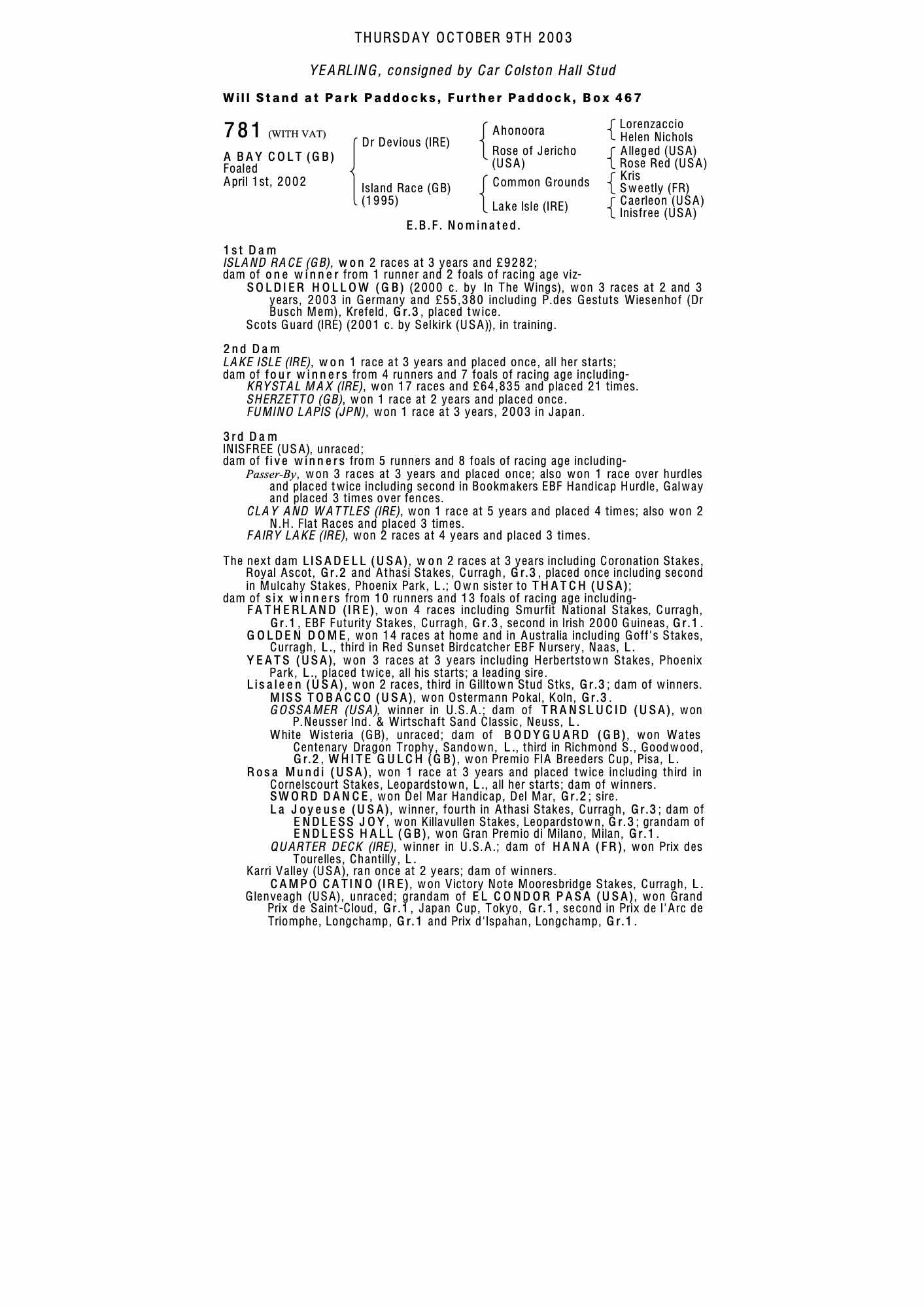 October Yearling Sale 2001 lot 866 C. by In The Wings , Car Colston Hall Stud=>German International Bloodstock 75,000 gns