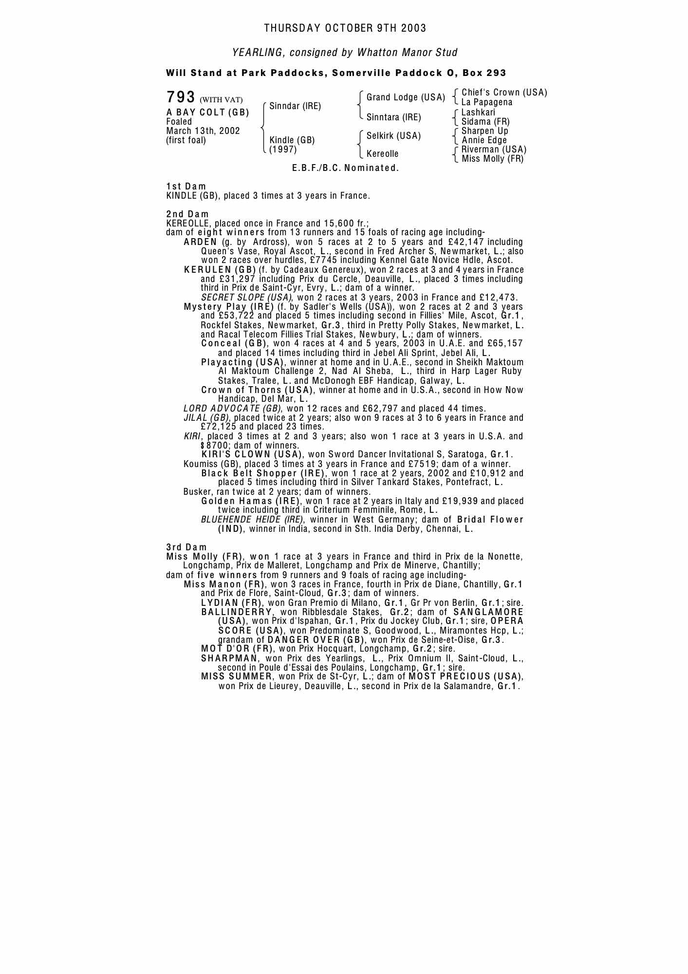 October Yearling Sale, Book 2 2004 lot 1272 C. by Dansili (GB) 2003, Whatton Manor Stud=>Pro-Am & Co 22,000 gns