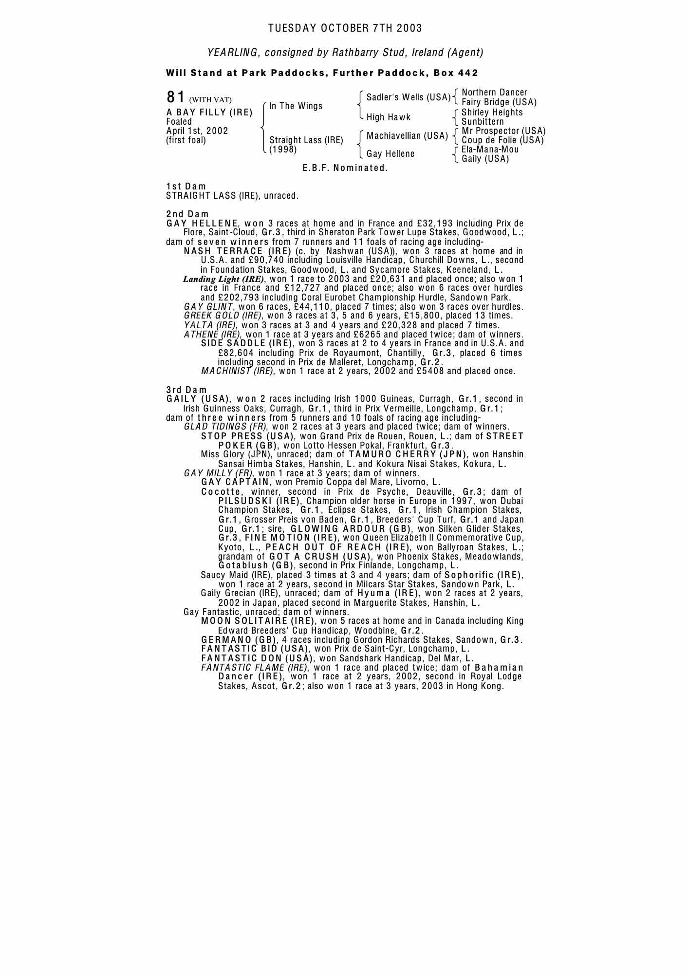 February Sale 2005 lot 33 Straight Miss (IRE) (F.), John Troy, Agent=>Sandley Stud 3,200 gns