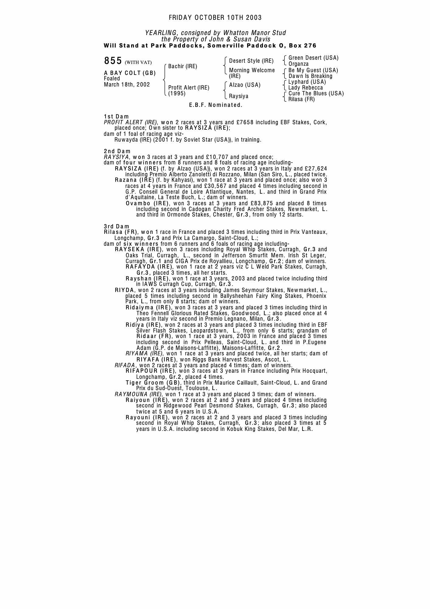 October Yearling Sale 2002 lot 762 F. by Soviet Star (USA) 2001, Whatton Manor Stud=>John McCormack Bloodstock 55,000 gns