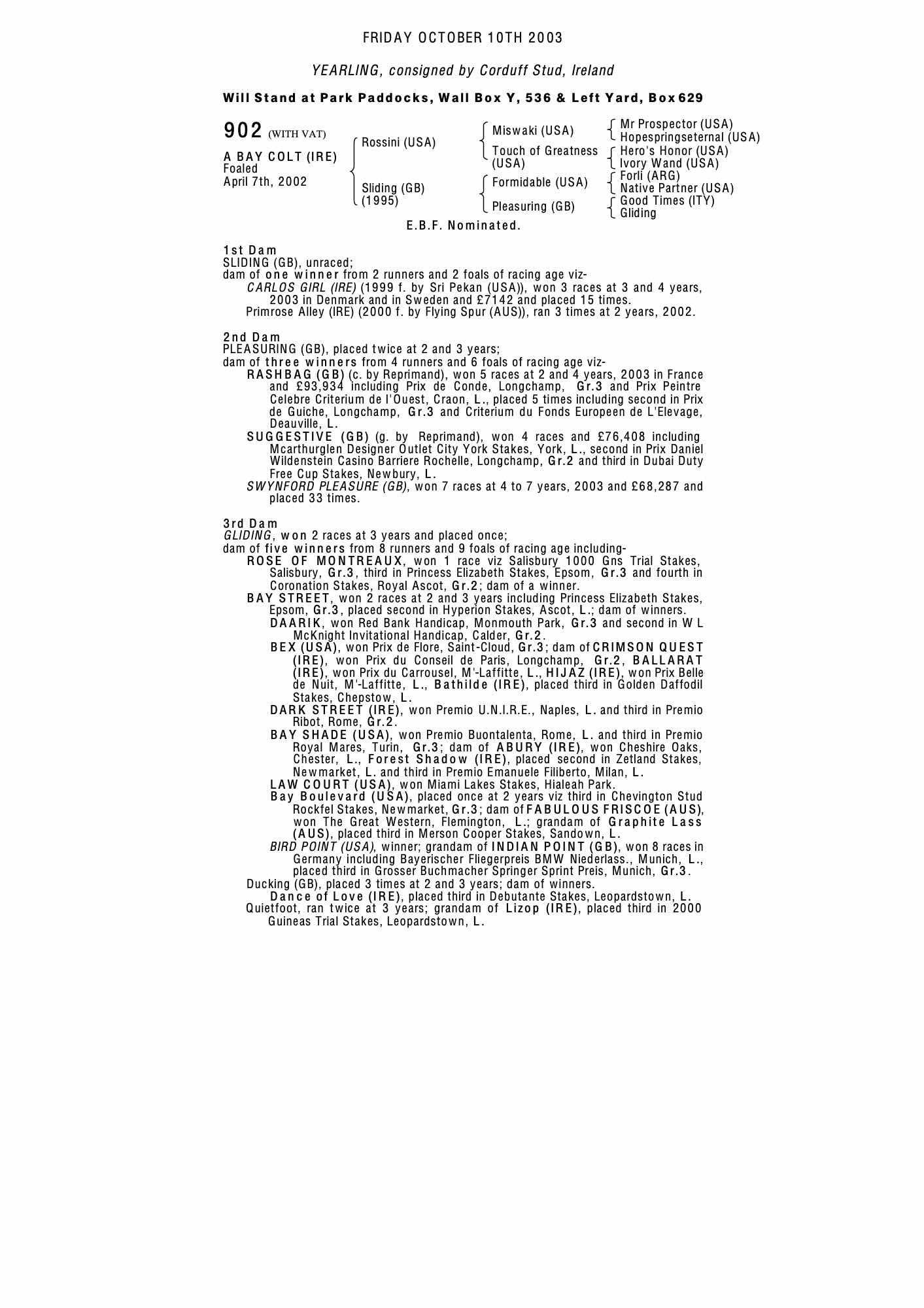 September Yearling Sale 2001 lot 545 F. by Flying Spur (AUS) 2000, Michael Downey=>A Skiffington €5,079