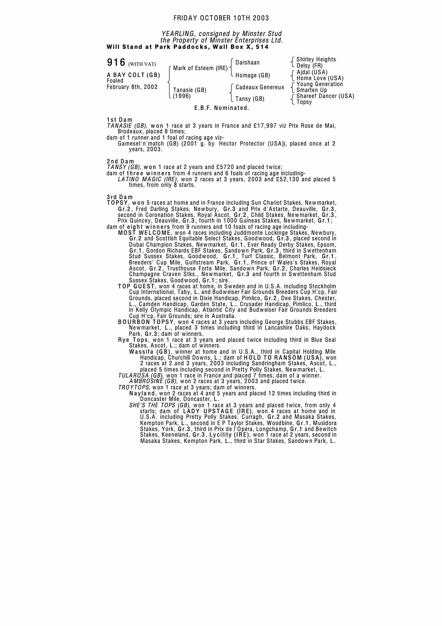 October Yearling Sale, Book 2 2004 lot 1126 C. by Spectrum (IRE) 2003, Minster Stud=>Lot Not Sold 13,000 gns
