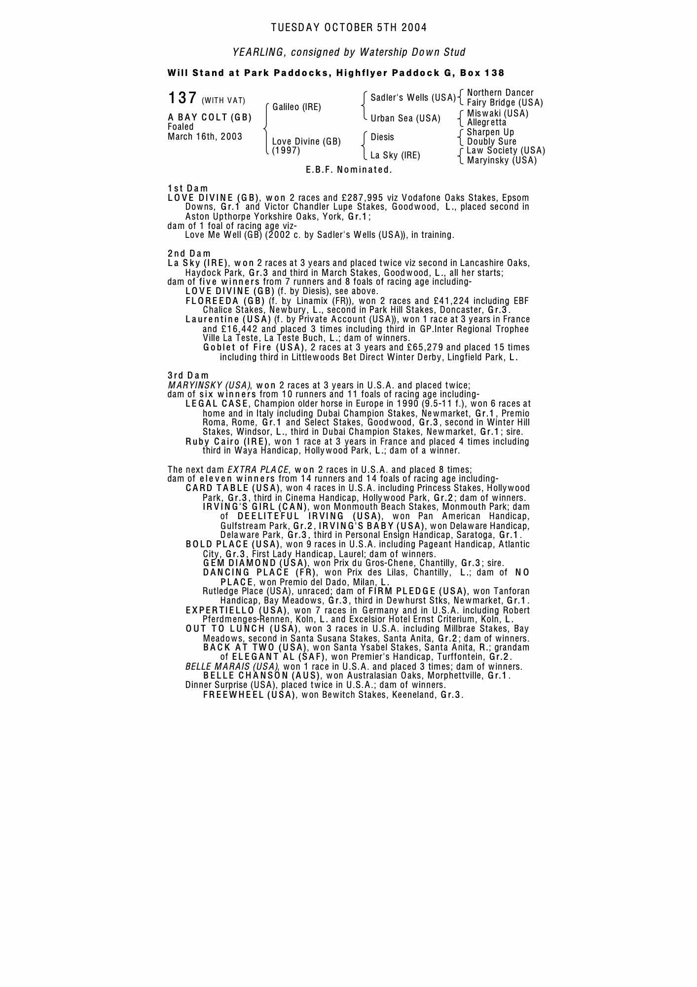 Houghton Yearling Sale 2003 lot 9 C. by Sadler's Wells (USA) 2002, Watership Down Stud=>Vendor 170,000 gns