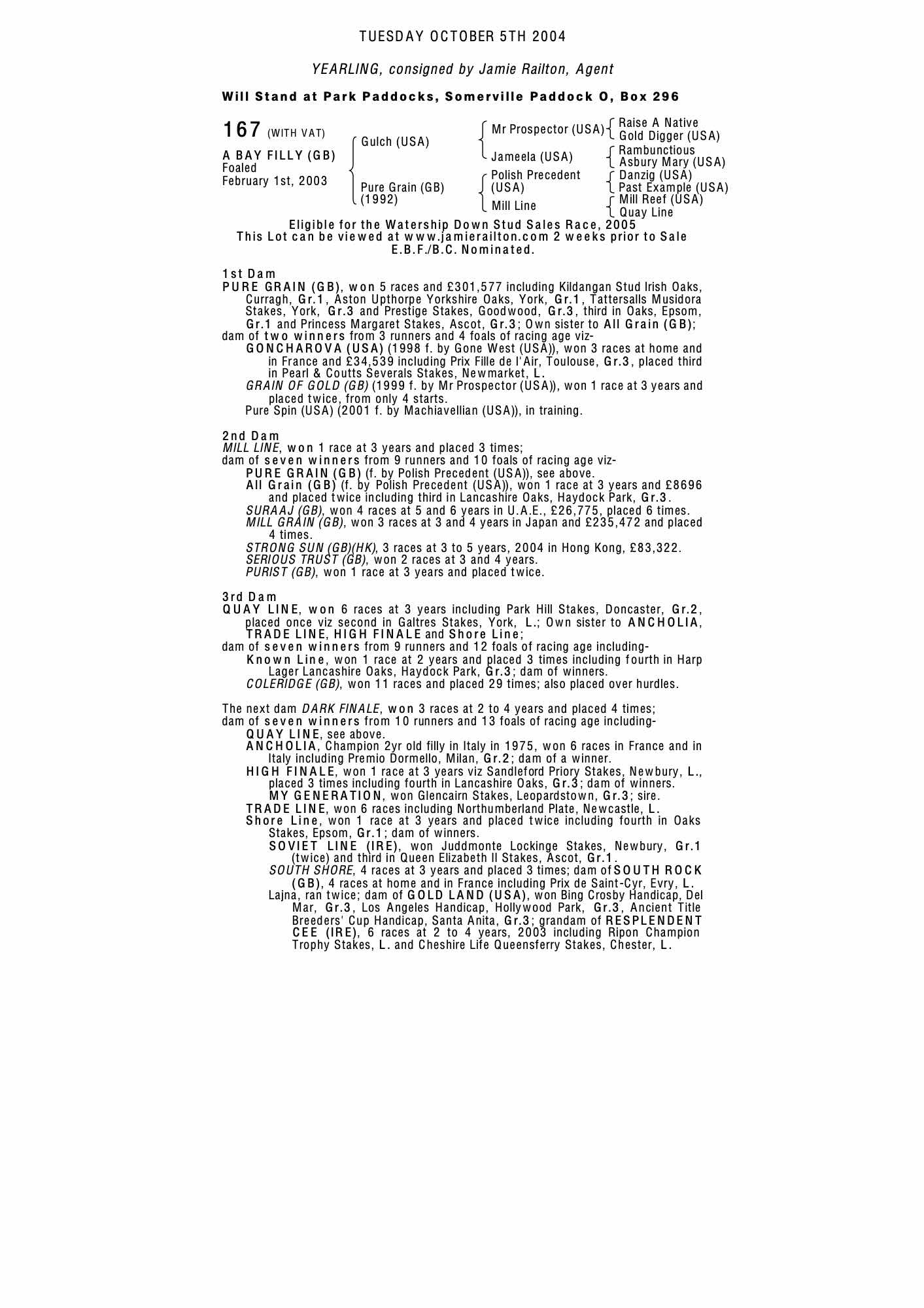 December Mare Sale 2004 lot 1739 Pure Spin (USA) (M. by Machiavellian (USA)), Jamie Railton, Agent=>Celbridge Estates 140,000 gns