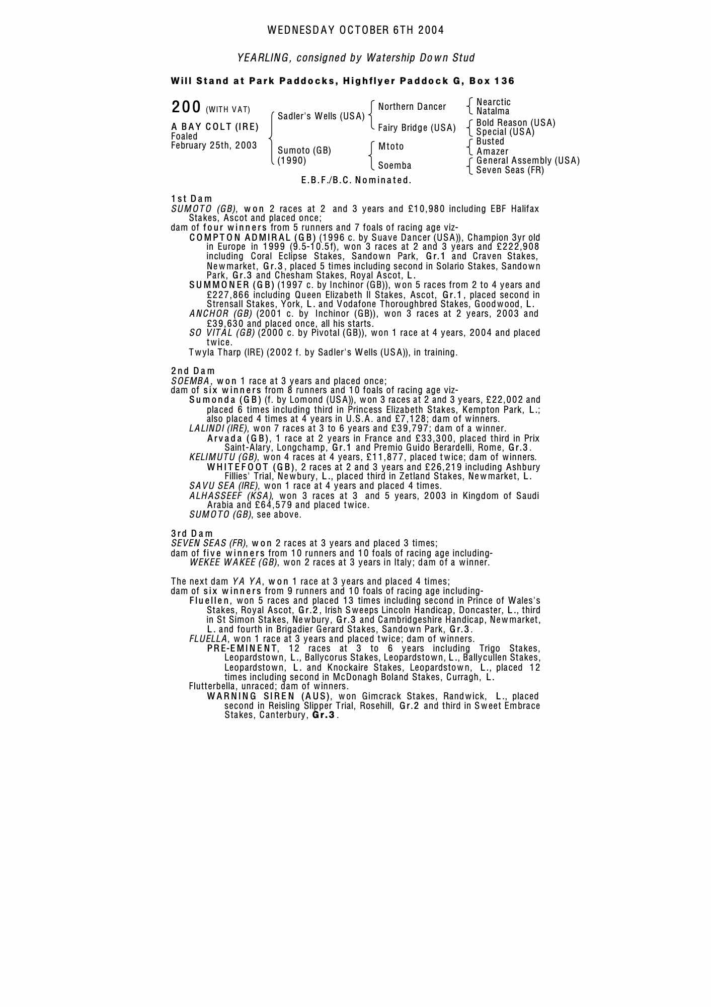 July Sale 2004 lot 111 So Vital (GB) (C. by Pivotal (GB)), Wroughton House Stables=>Fahad Al Shatti 8,500 gns