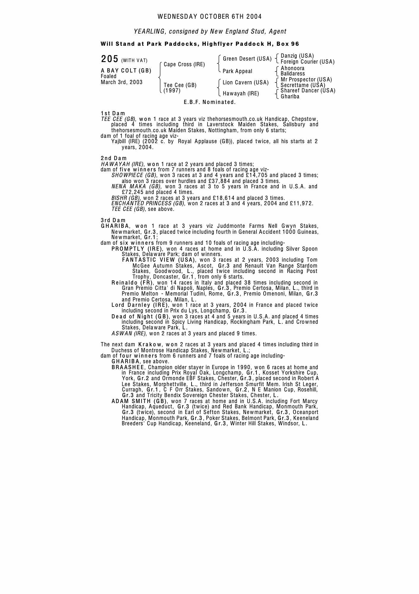 December Foal Sale 2004 lot 1266 F. by Noverre (USA) 2004, Trickledown and Paradise Farm Studs=>GThornton 40,000 gns