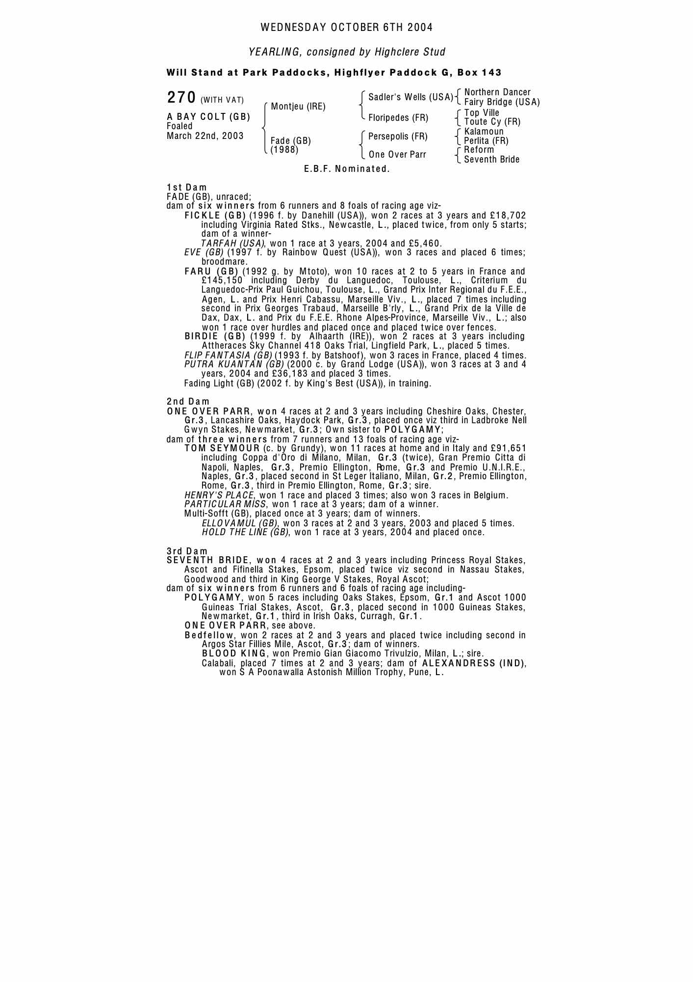 Consignor: Highclere Stud