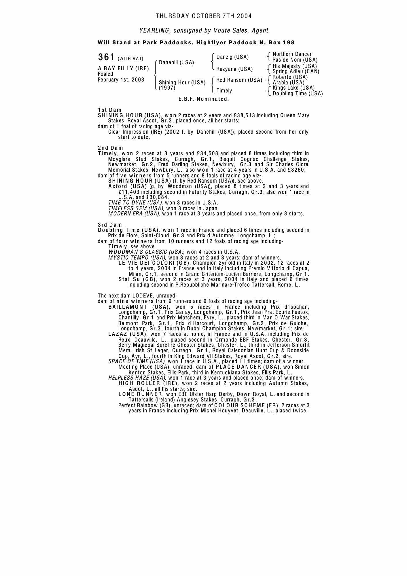 October Yearling Sale, Book 2 2005 lot 897 C. by Indian Ridge 2004, Glenvale Stud, Ireland=>James Given Racing 35,000 gns