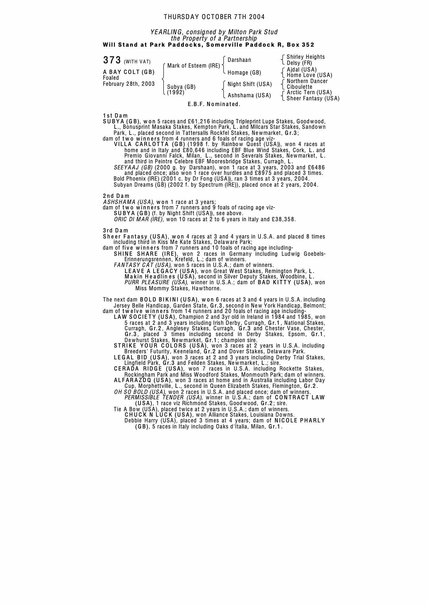October Yearling Sale, Book 1 2003 lot 83 F. by Spectrum (IRE) 2002, Milton Park Stud=>Blandford Bloodstock 45,000 gns