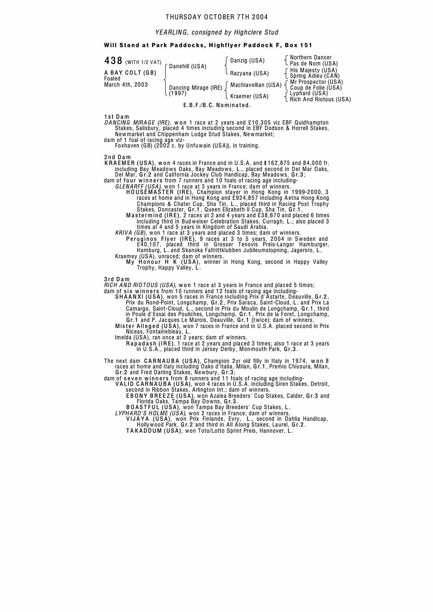 October Yearling Sale, Book 1 2003 lot 724 C. by Unfuwain (USA) 2002, Highclere Stud=>Blandford Bloodstock 40,000 gns