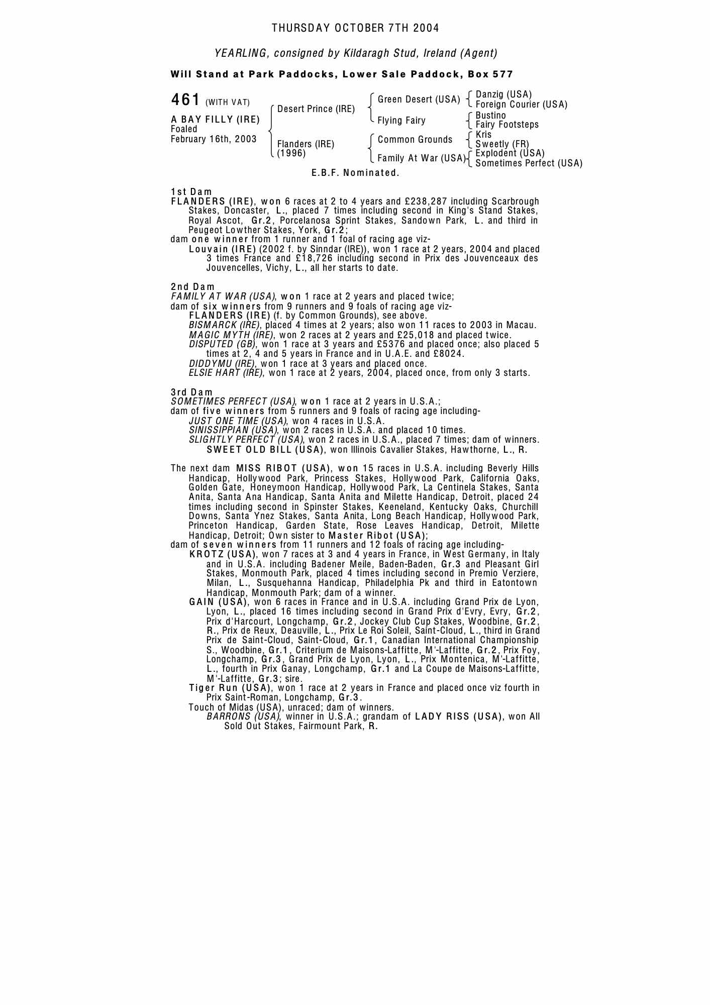 October Yearling Sale, Book 1 2003 lot 205 F. by Sinndar (IRE) 2002, Kildaragh Stud, Ireland=>Vendor 28,000 gns