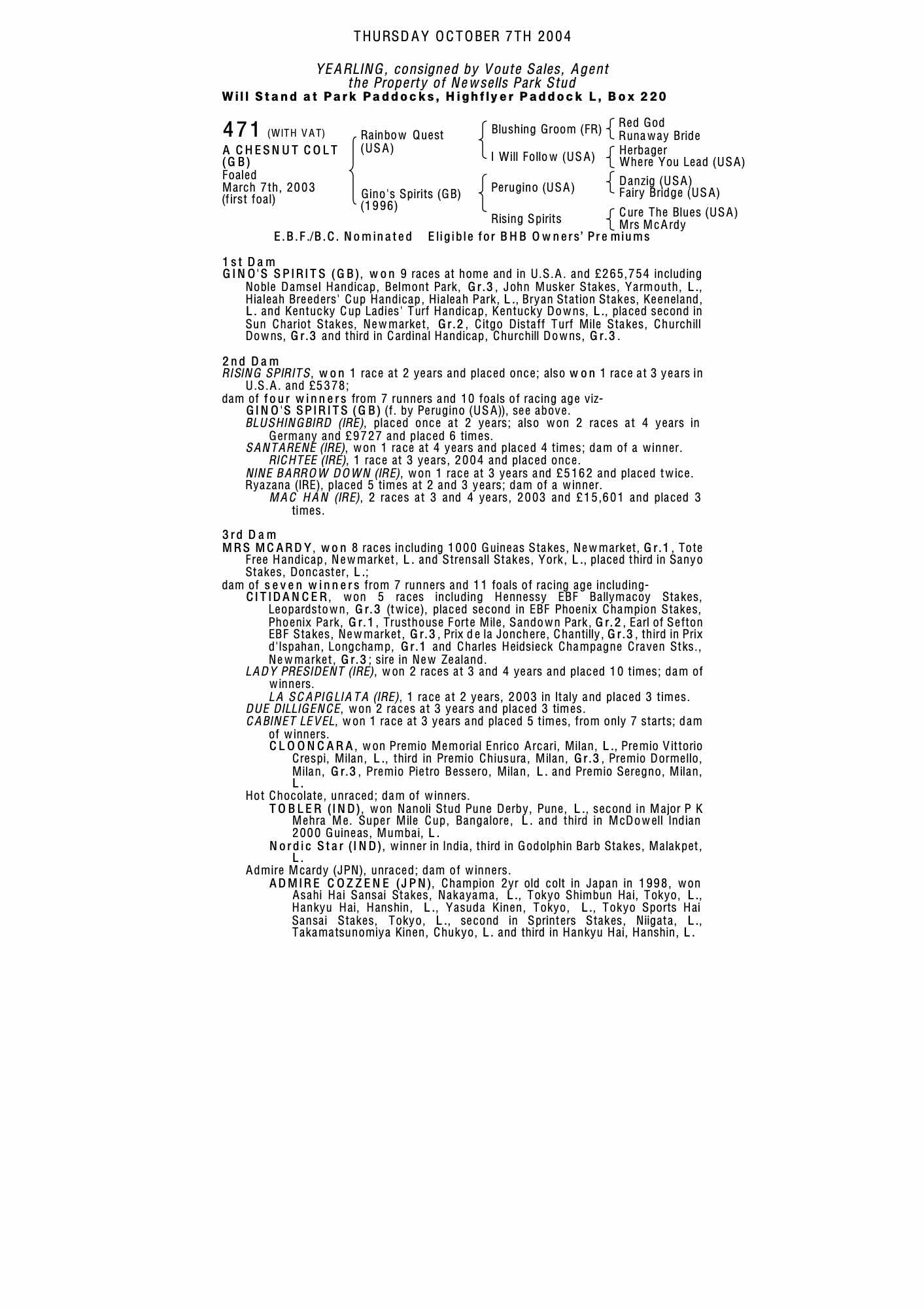 July Sale 2009 lot 226 Crosby Jemma (GB) (M. by Lomitas (GB)), Southwold Farm (M. Sowersby)=>Lot Not Sold 5,800 gns