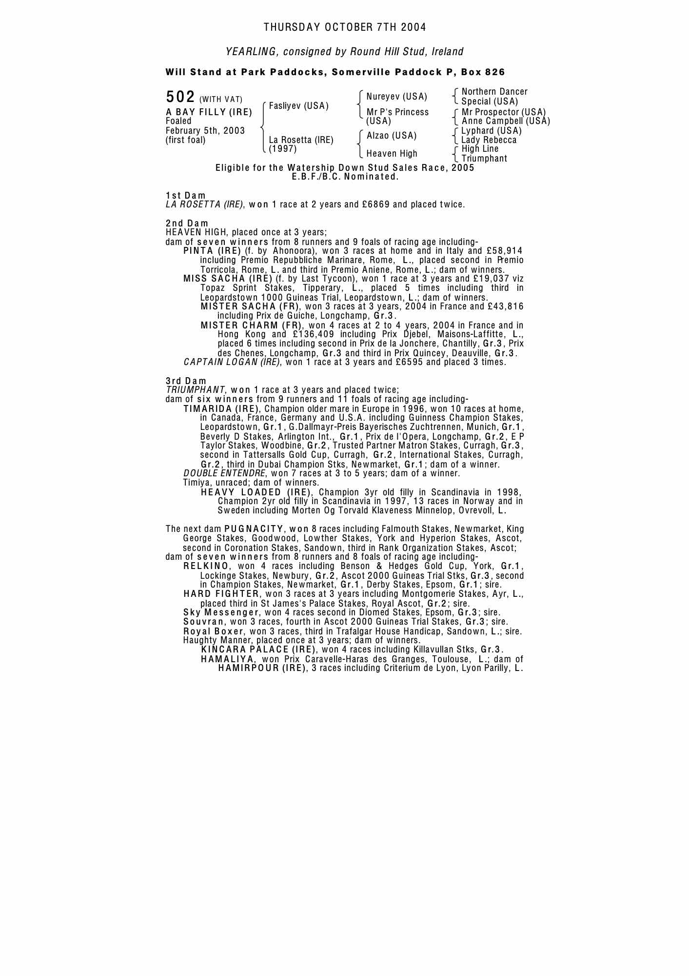 Consignor: Round Hill Stud, Ireland