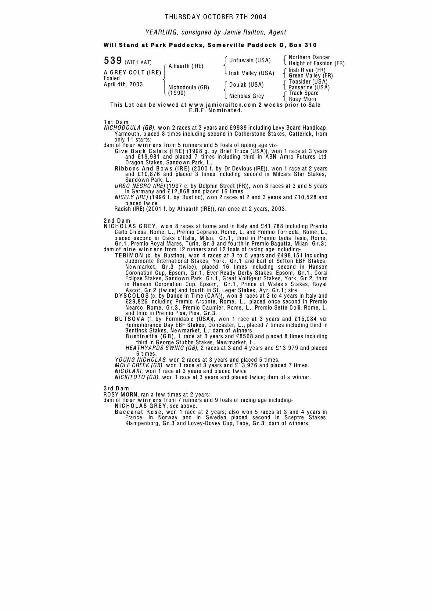 December Foal Sale 2003 lot 1249, Parkway Farm, Ireland=>D Hassan 29,000 gns