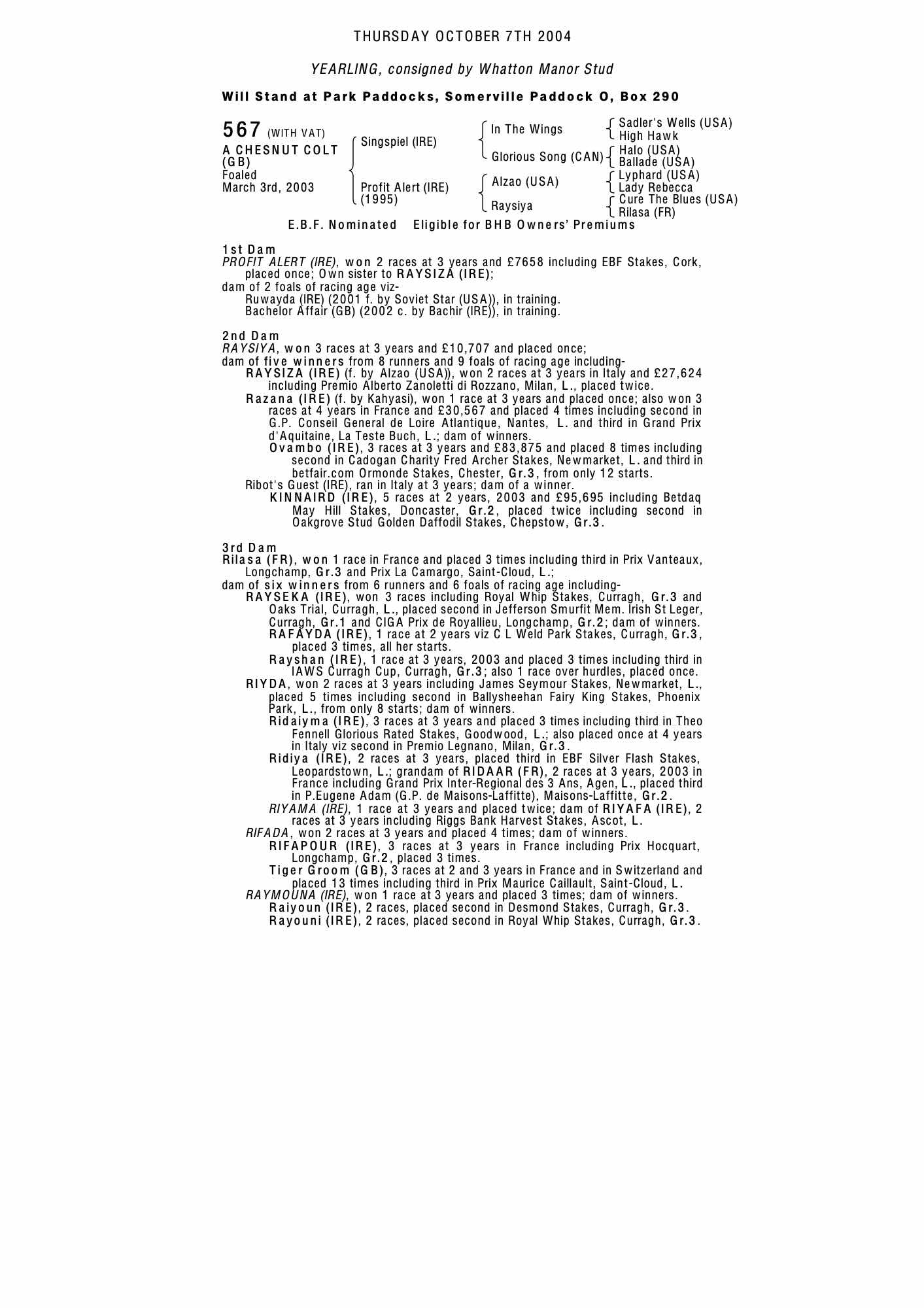 October Yearling Sale, Book 1 2003 lot 855 C. by Bachir (IRE) 2002, Whatton Manor Stud=>Blandford Bloodstock 20,000 gns