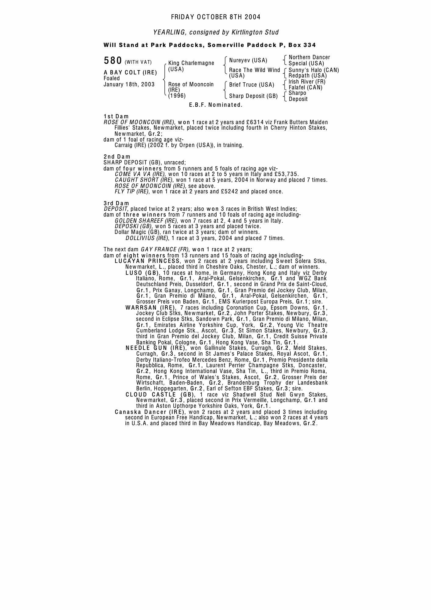 December Foal Sale 2003 lot 537, Albany Stud, Ireland=>Will Edmeades Bloodstock 30,000 gns