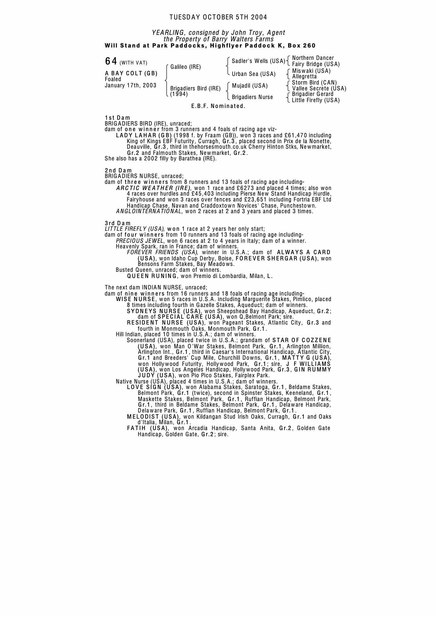 February Sale 2006 lot 322 Tyge Brahe (GB) (C.), Machell Place Stables=>German International B/Stock 5,000 gns