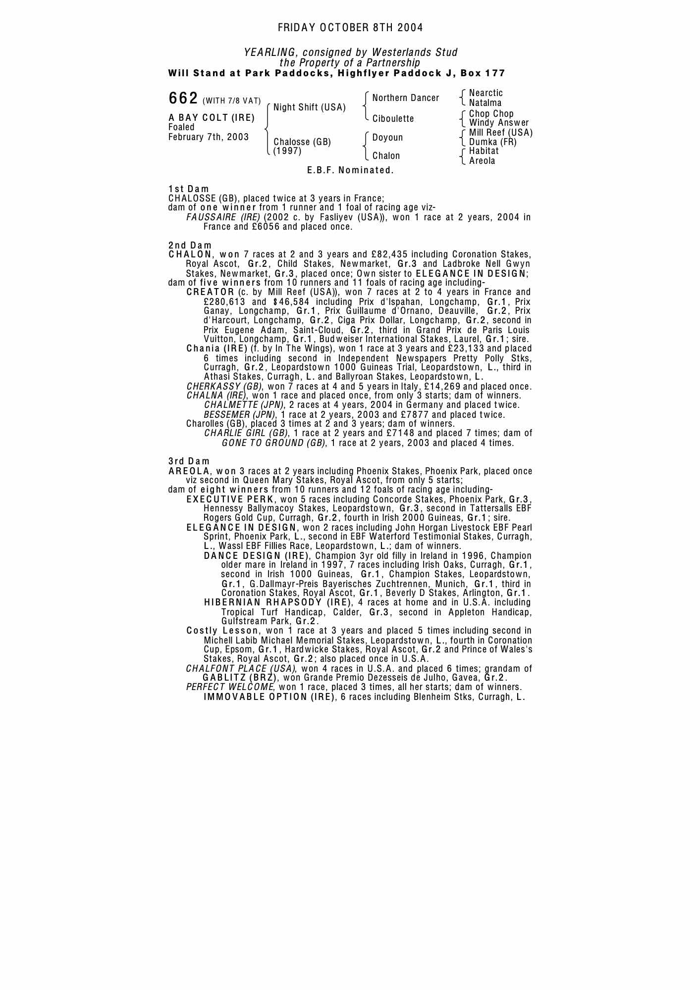 October Yearling Sale, Book 1 2003 lot 453 C. by Fasliyev (USA) 2002, Westerlands Stud=>Royal Amber 60,000 gns