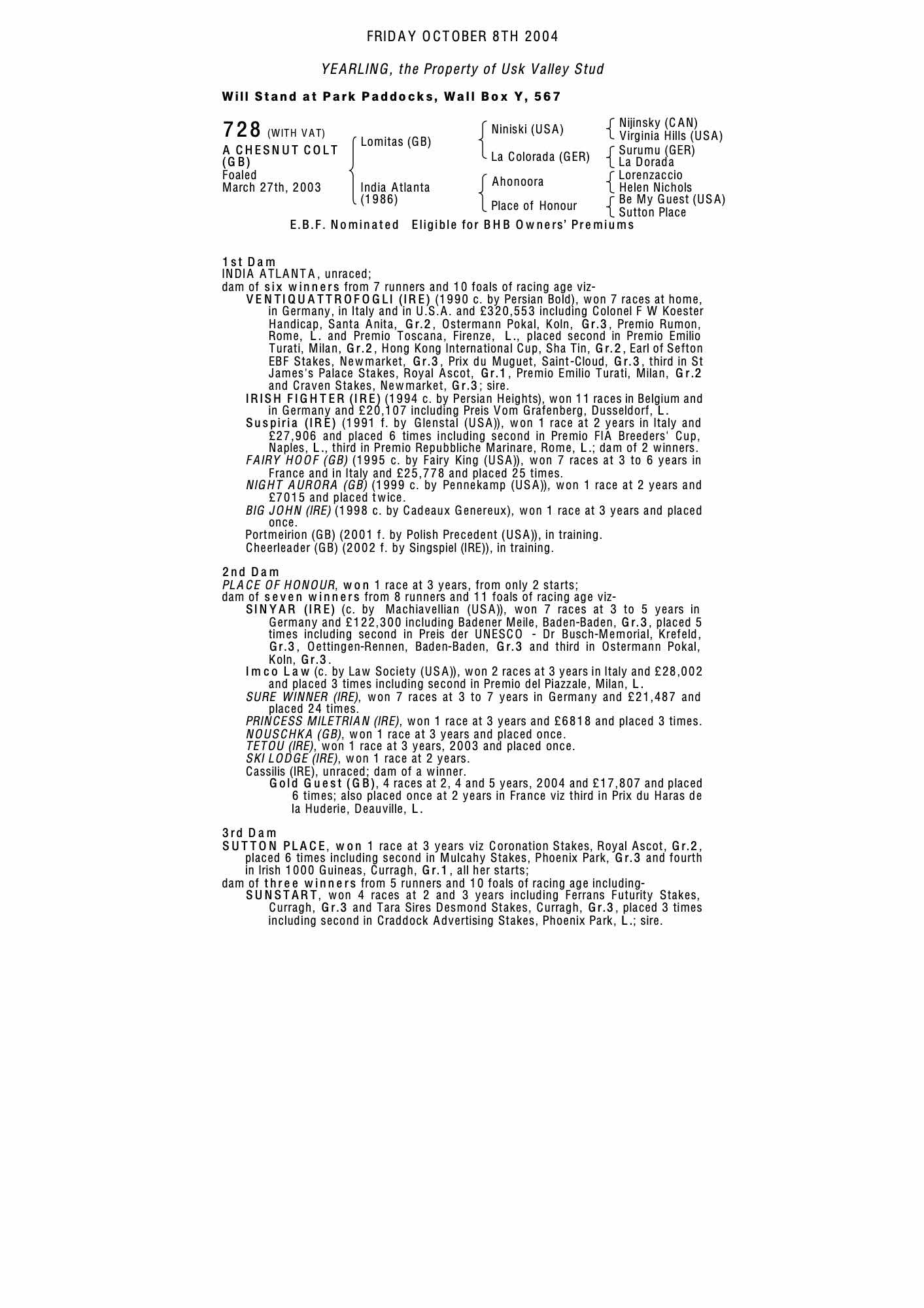Houghton Yearling Sale 2003 lot 157 F. by Singspiel (IRE) 2002, Usk Valley Stud=>John Ferguson Bloodstock 160,000 gns