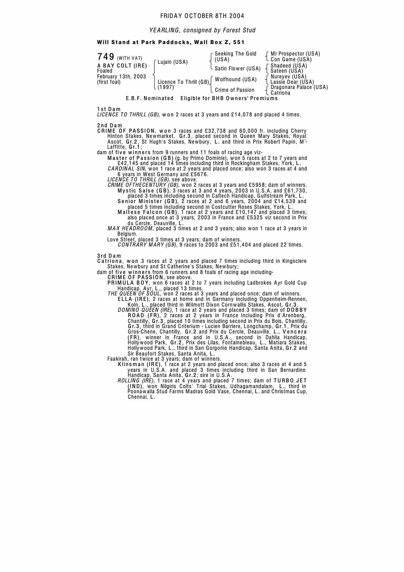 December Foal Sale 2003 lot 746, Stratford Place Stud=>Vendor 34,000 gns