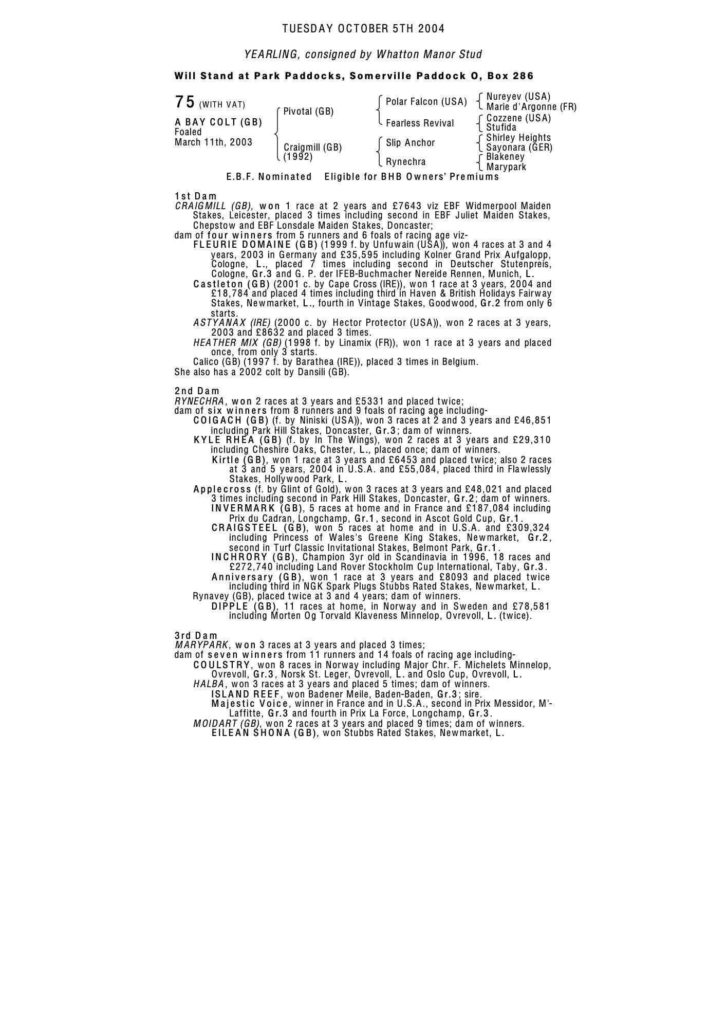 October Yearling Sale 2001 lot 608 C. by Hector Protector (USA) , Whatton Manor Stud=>Sir Mark Prescott BT 12,000 gns