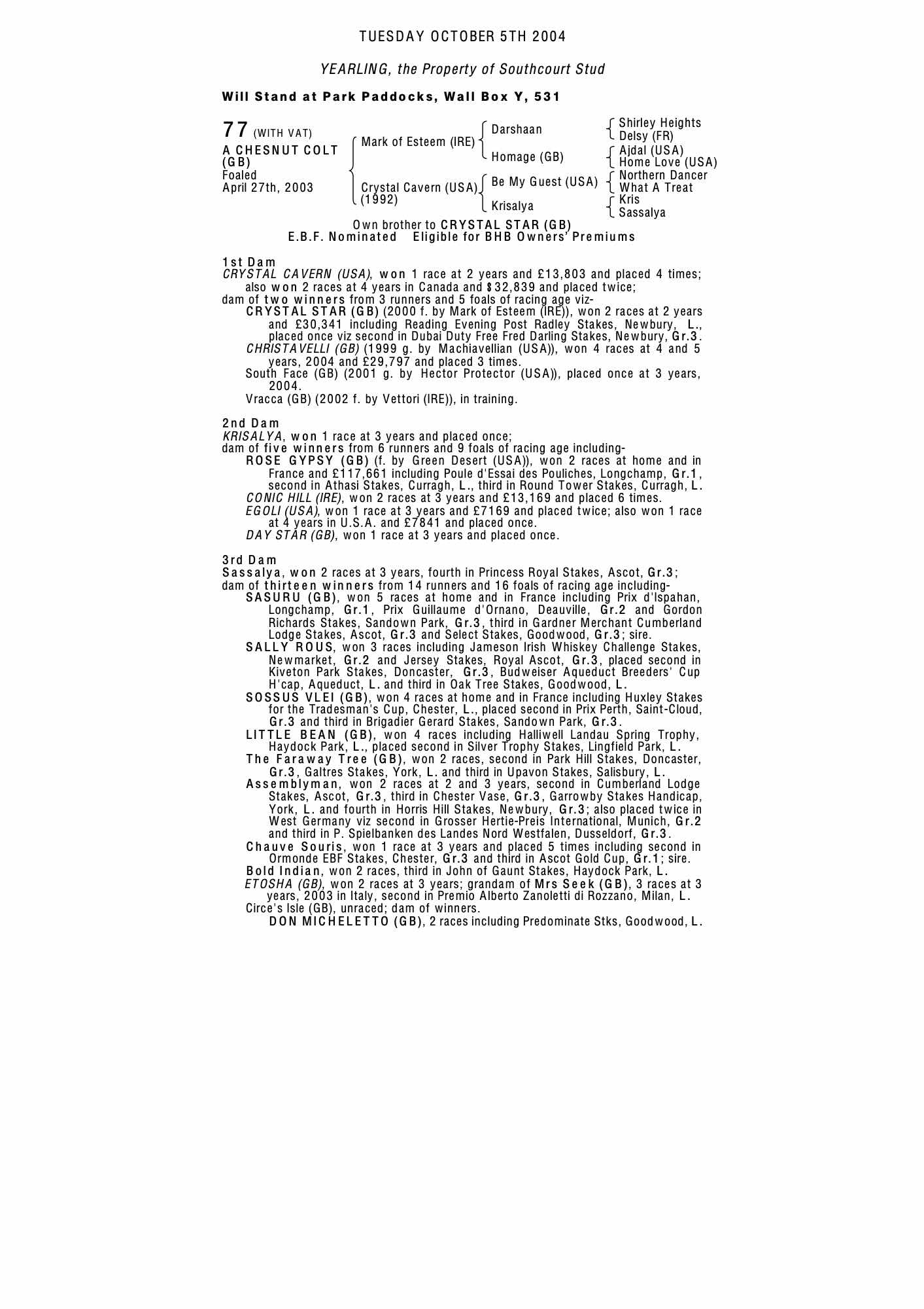 October Yearling Sale, Book 1 2003 lot 716 F. by Vettori (IRE) 2002, Southcourt Stud=>Peter Doyle Bloodstock 58,000 gns