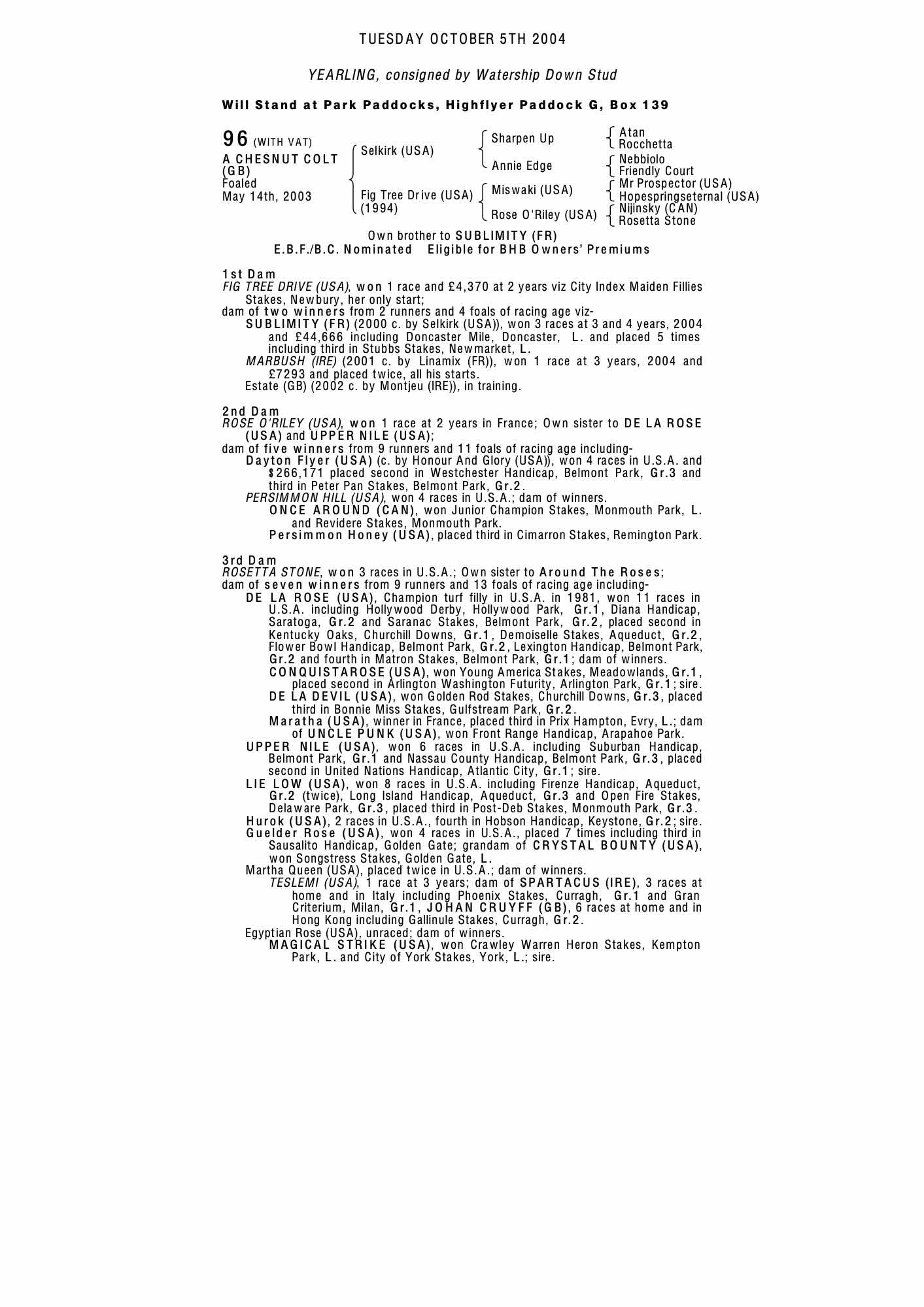 October Yearling Sale, Book 1 2005 lot 229 F. by Sadler's Wells (USA) 2004, Watership Down Stud=>Anthony Stroud Bloodstock 270,000 gns