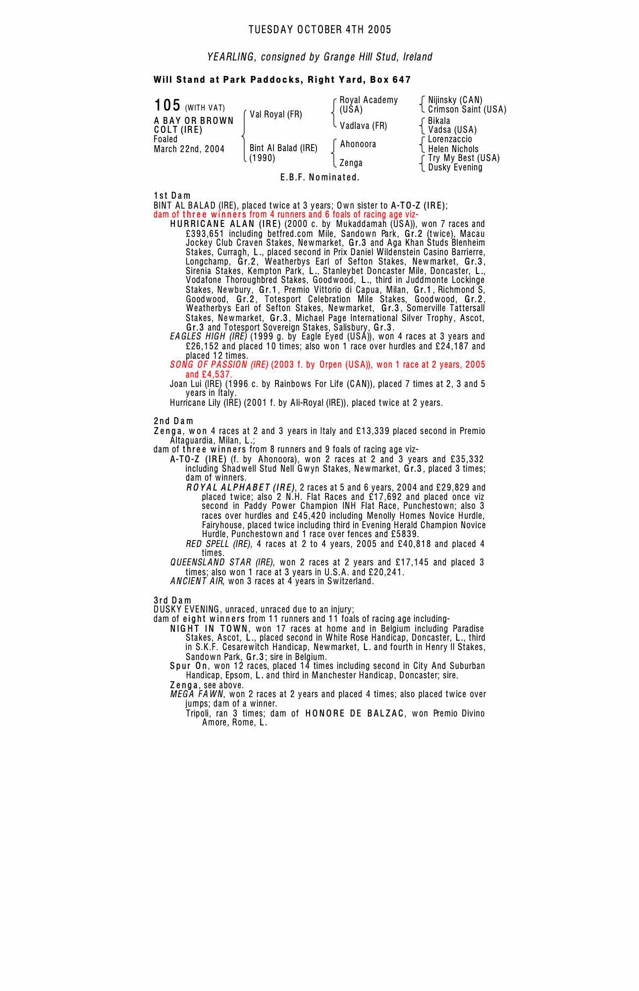 October Yearling Sale, Book 2 2004 lot 1180 F. by Orpen (USA) 2003, Glenvale Stud, Ireland (Agent)=>Peter Doyle Bloodstock 40,000 gns