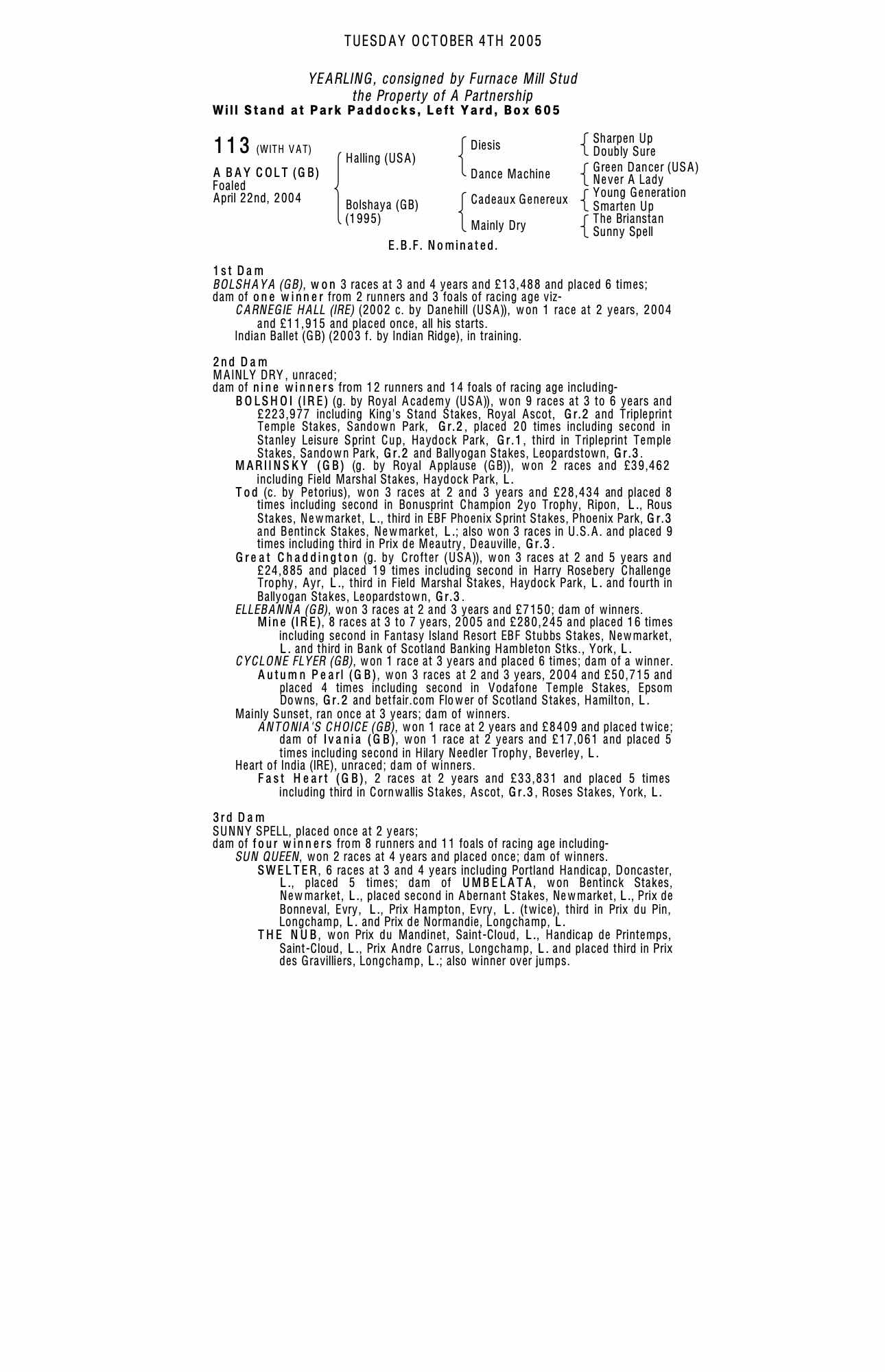 October Yearling Sale, Book 1 2004 lot 243 F. by Indian Ridge 2003, Furnace Mill Stud=>Cheveley Park Stud 140,000 gns
