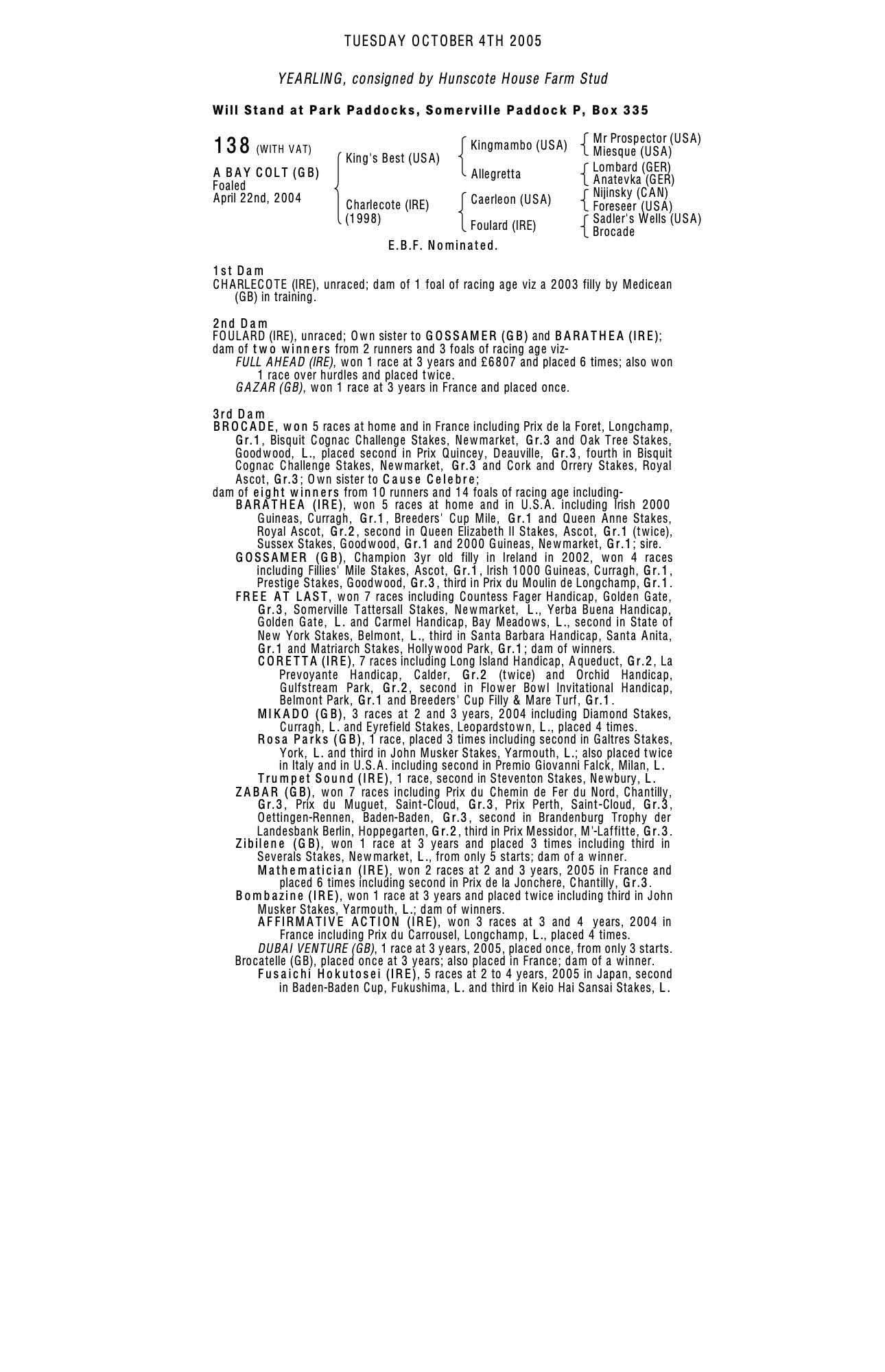October Yearling Sale, Book 2 2004 lot 1695 F. by Medicean (GB) 2003, Hunscote House Farm Stud=>Vendor 11,000 gns