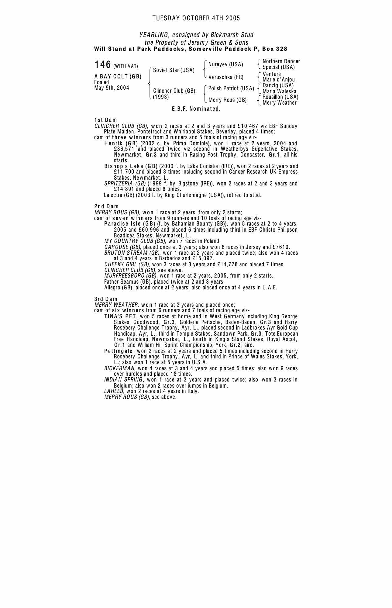 Consignor: Bickmarsh Stud