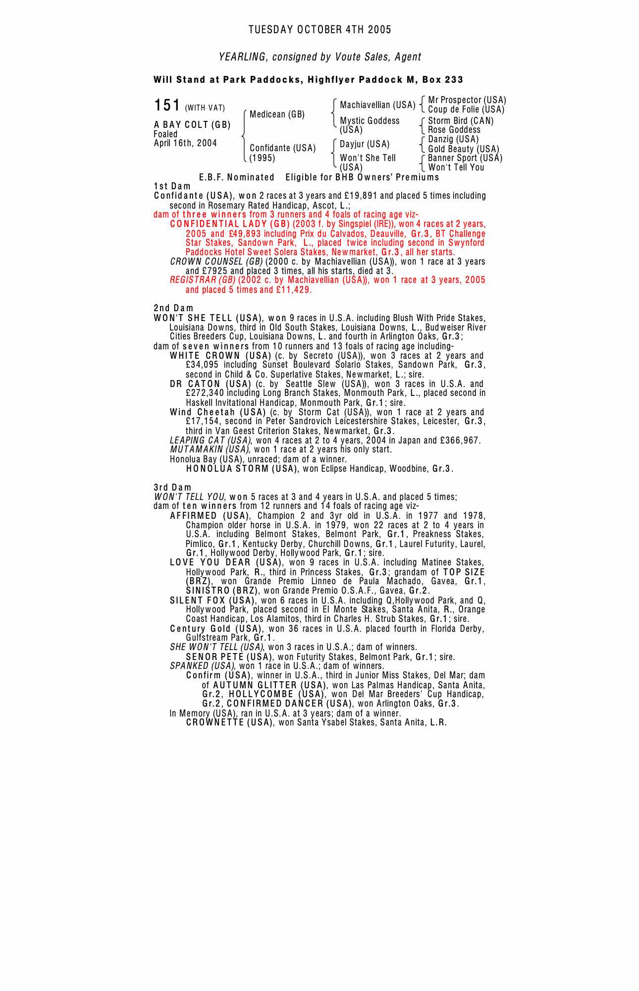Autumn Horses in Training Sale 2005 lot 502 Registrar (GB) (C. by Machiavellian (USA)), Coombelands Racing Stables=>CA Dunnett 31,000 gns