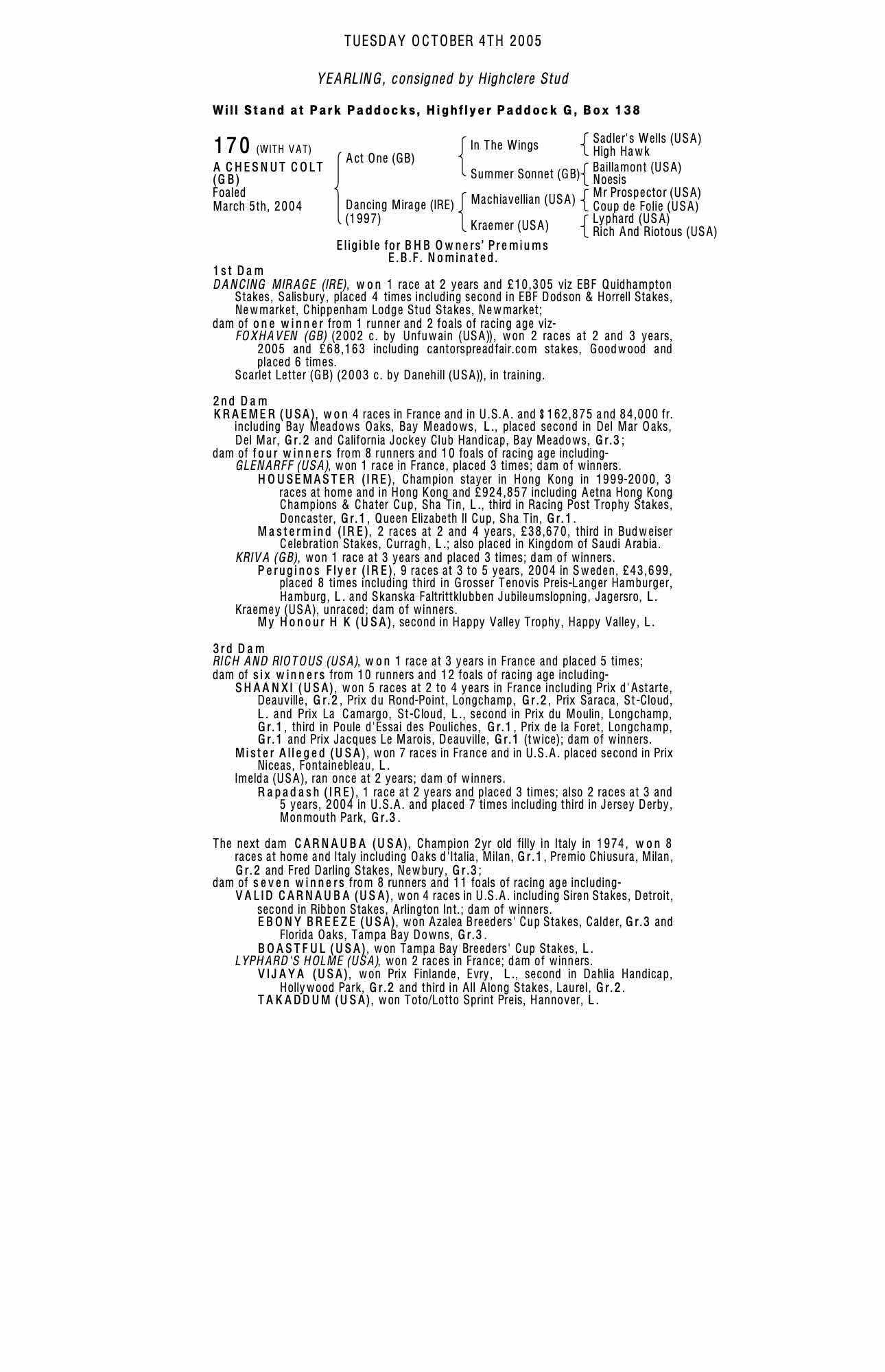 Consignor: Highclere Stud