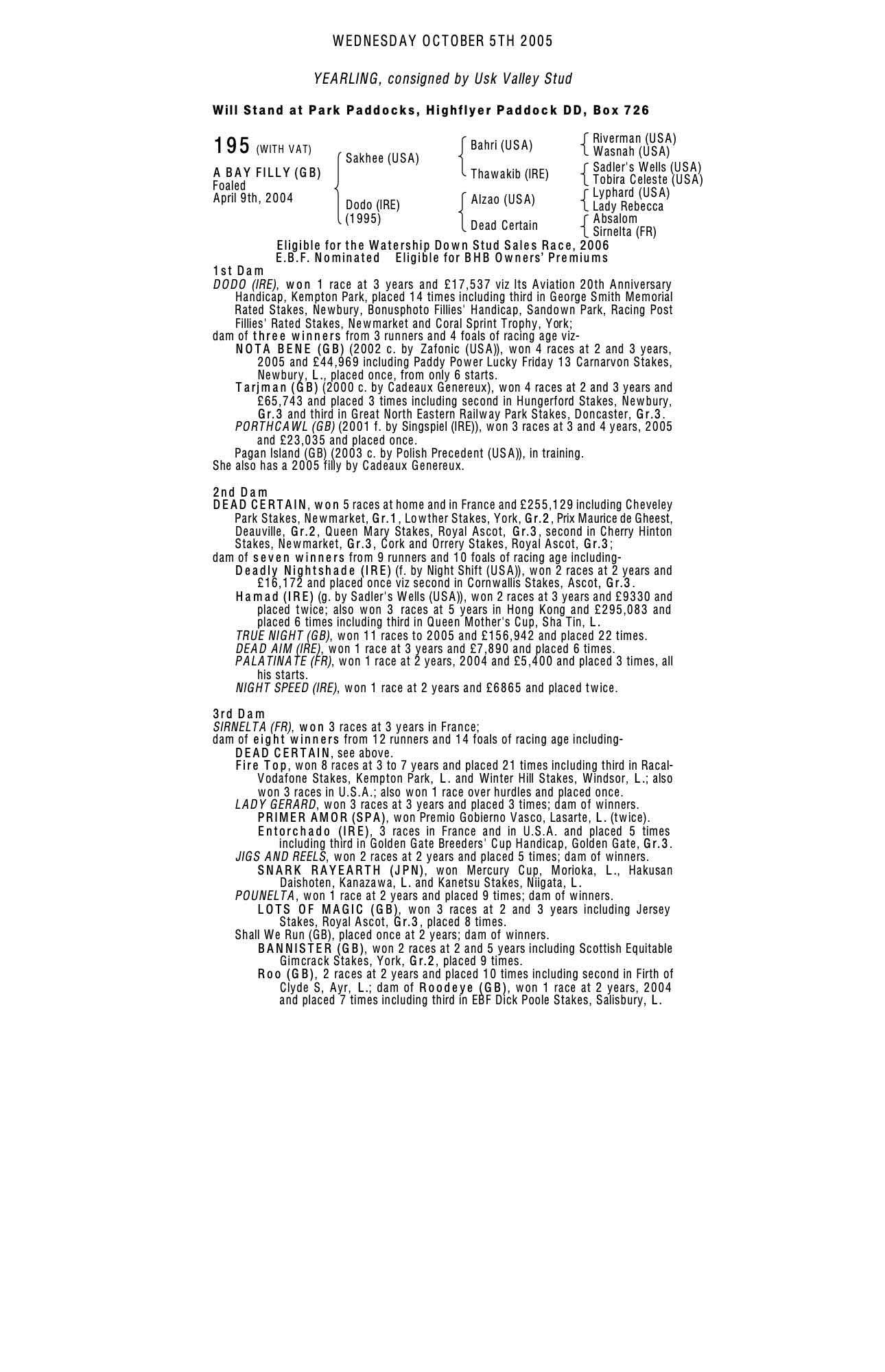 December Yearling Sale 2003 lot 115 C. by Zafonic (USA) 2002, Usk Valley Stud=>D Elsworth 14,000 gns